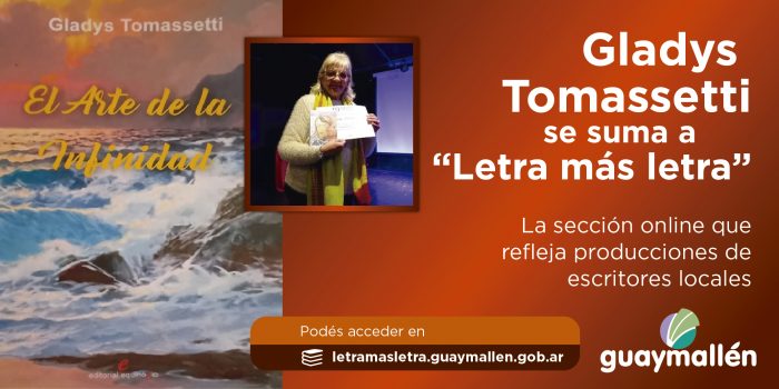 Los poemas de Tomassetti y otros referentes destacados pueden apreciarse ingresando a https://letramasletra.guaymallen.gob.ar/. Es importante mencionar que aquellos escritores interesados en ser parte del sitio online de Guaymallén pueden comunicarse al teléfono 4498123, de lunes a viernes, de 9 a 14h.