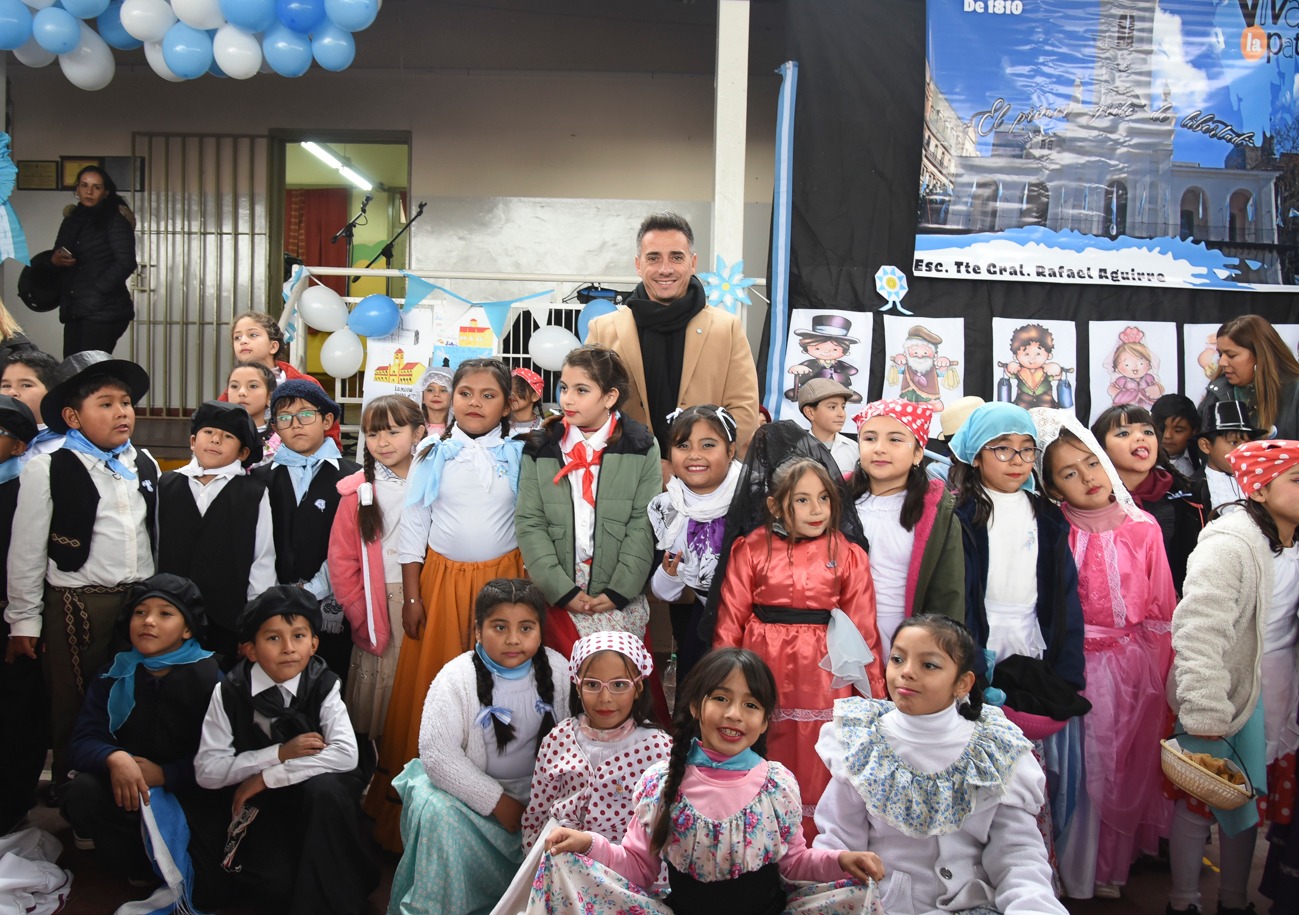 Este año, el acto del 25 de Mayo para la Municipalidad de Guaymallén se vivió junto a los niños del departamento y la comunidad educativa de Kilómetro 8, en la escuela Escuela Teniente General Aguirre.