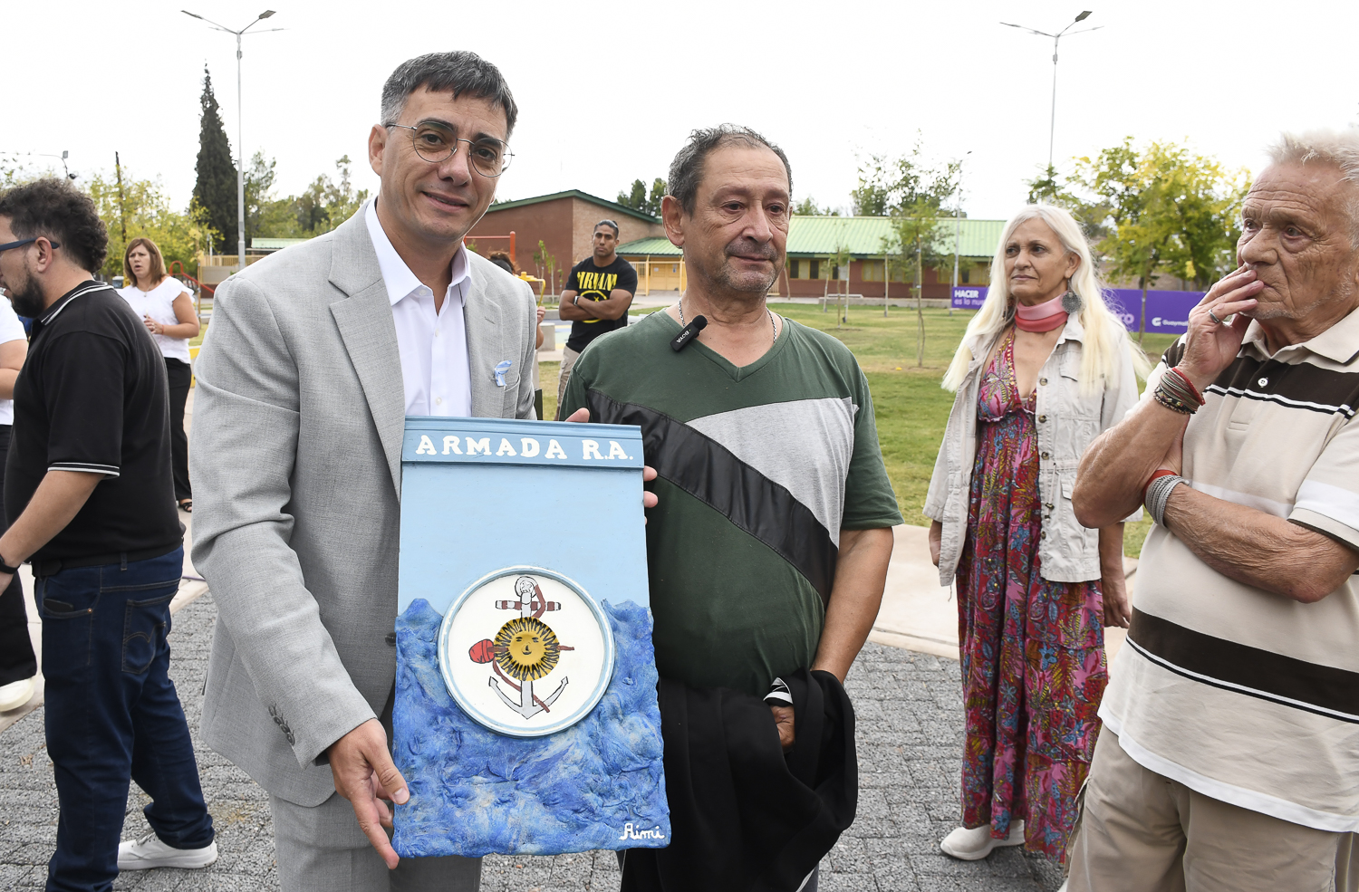 El acto se realizó en la plaza Malvinas Argentinas del Barrio UTMA, ubicada en el distrito San Francisco del Monte, un espacio verde recientemente renovado por la Municipalidad de Guaymallén.