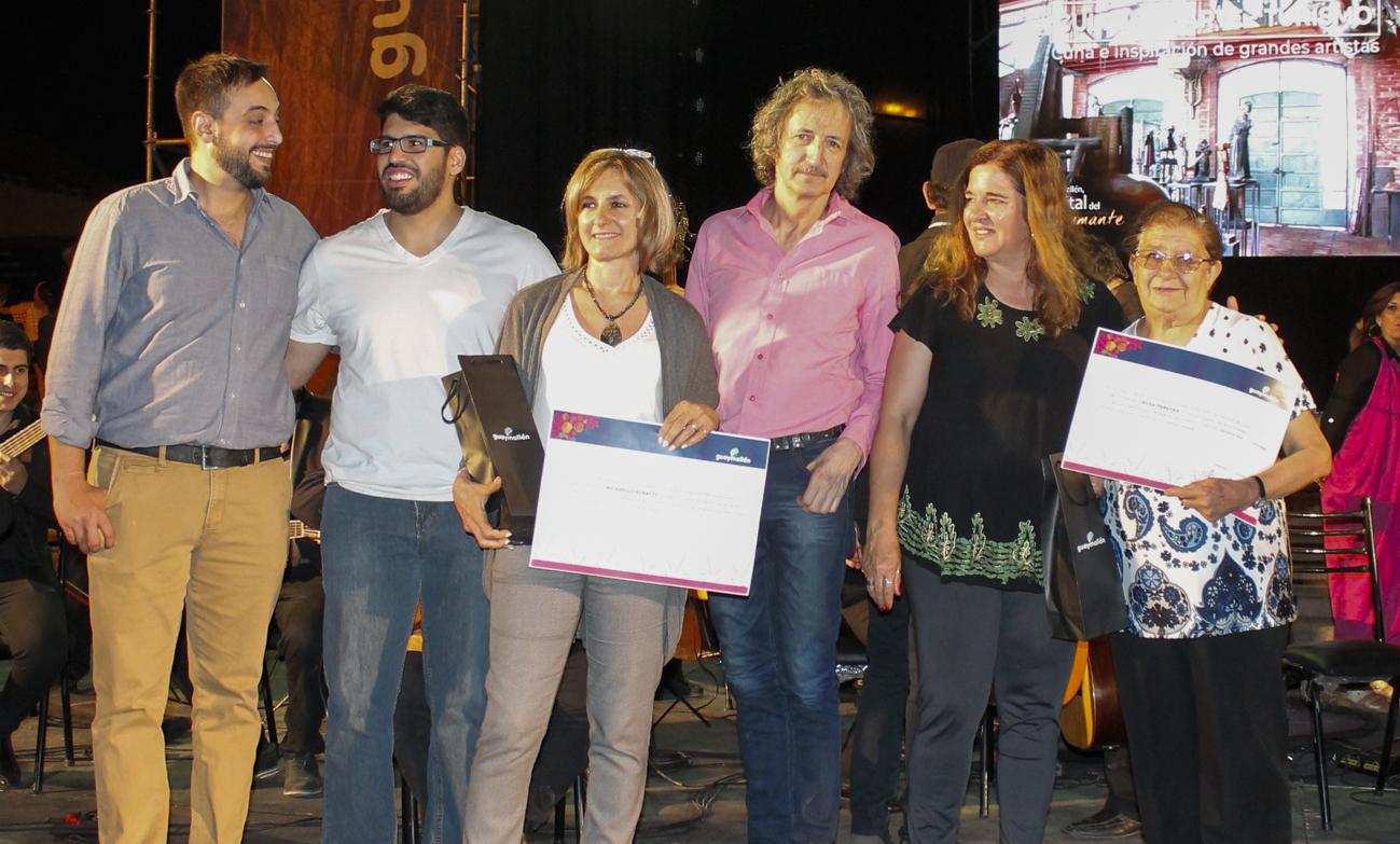 Un momento emotivo fue el homenaje a quienes hoy tienen una página especial en el libro de la historia cultural de Guaymallén, como los contemporáneos Rosa Pereyra y Luis Quesada (recibió el reconocimiento su hijo Ramiro). También el recordado Luis Ricardo Casnati, representado por su hija Julieta.