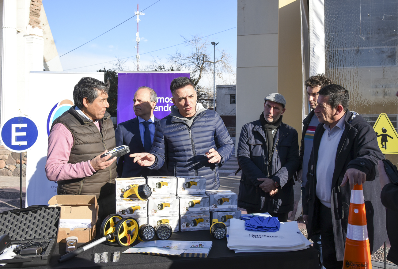 Además, la Unidad Ejecutiva de Seguridad Vial entregó a la Municipalidad de Guaymallén 50 conos, 20 linternas y cinco balizas con baterías recargables para operativos viales nocturnos y un odómetro (aparato con rueditas que se usa para hacer mediciones en el pavimento, como el tamaño de las marcas de frenadas que resultan determinantes en el cálculo de la velocidad a la que venía un vehículo).
