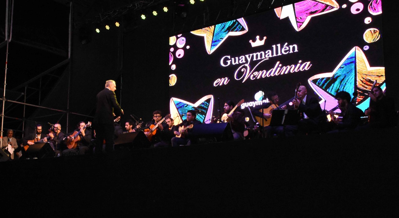 Hoy martes 26 de febrero, el espectáculo estará a cargo de la Orquesta Municipal de Guitarras Tito Francia acompañando la voz de Carlos Alcaraz, los cantantes líricos Julio Fiore y Gimena Semiz, la voz de Alina Rodríguez y la actuación de los bailarines independientes de Guaymallén. Esta noche le darán vida a «Vendimia de la Libertad», un homenaje a la democracia, bajo la dirección de Evangelina Mayol y Eduardo Terrazas.