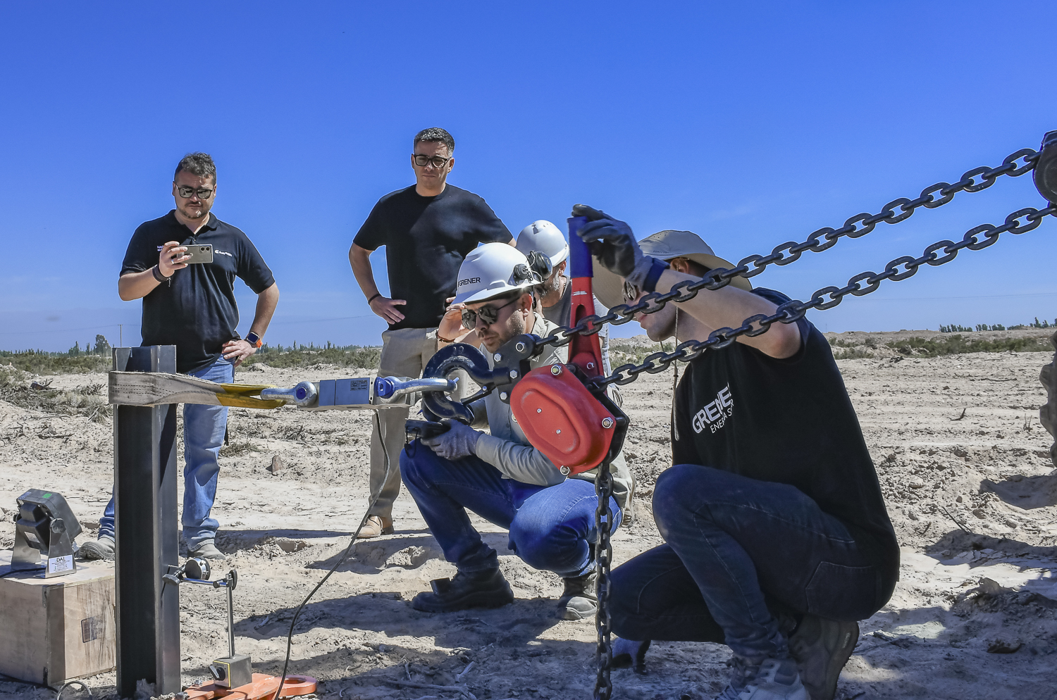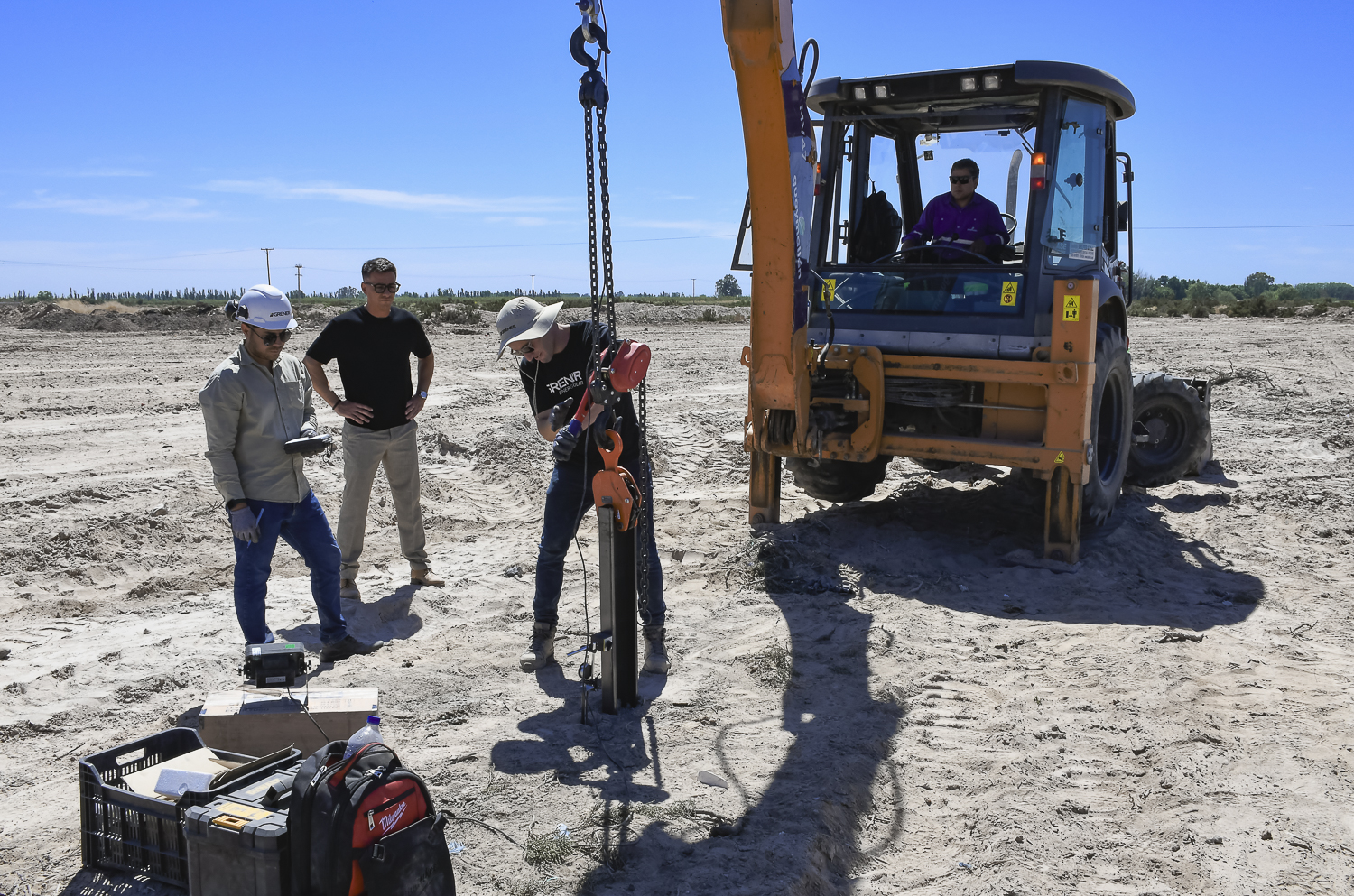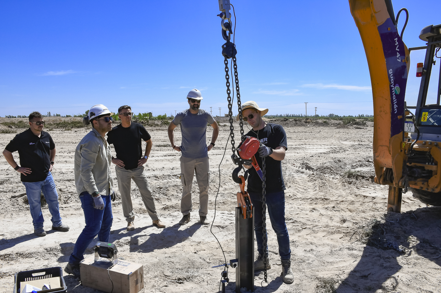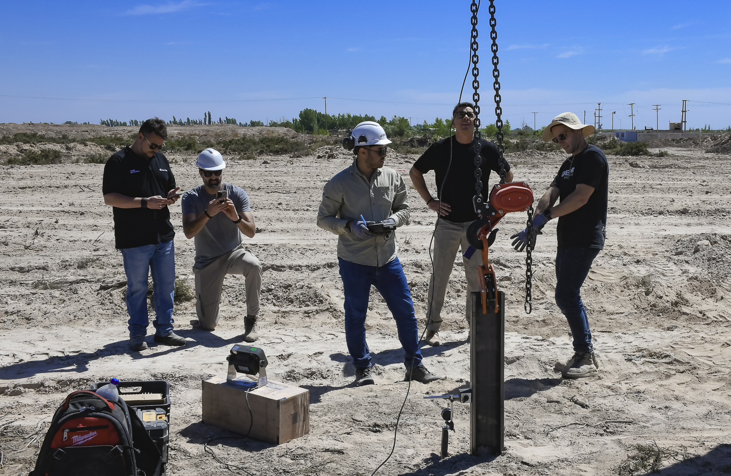 Por un lado se aplicó un empuje lateral para medir el desplazamiento hacia el costado del perfil, por el otro se hizo una tracción vertical para medir el desplazamiento hacia arriba y si podría ser arrancado por un viento fuerte. En ambos casos las primeras mediciones dieron resultados alentadores, por lo que se continuará hincando más perfiles metálicos en el suelo, simulando también condiciones de lluvias copiosas. Así avanzan los estudios para cumplir el objetivo de tener listos los pliegos licitatorios en noviembre.