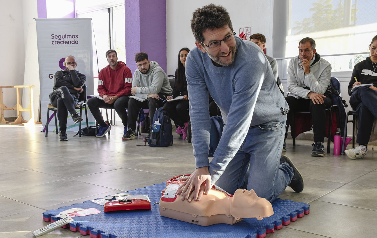 La capacitación es dictada junto a la Sociedad Cardiológica de Mendoza y está dirigida a personal de las direcciones de Salud y de Educación y Deportes de la Municipalidad. Participan referentes de clubes deportivos.