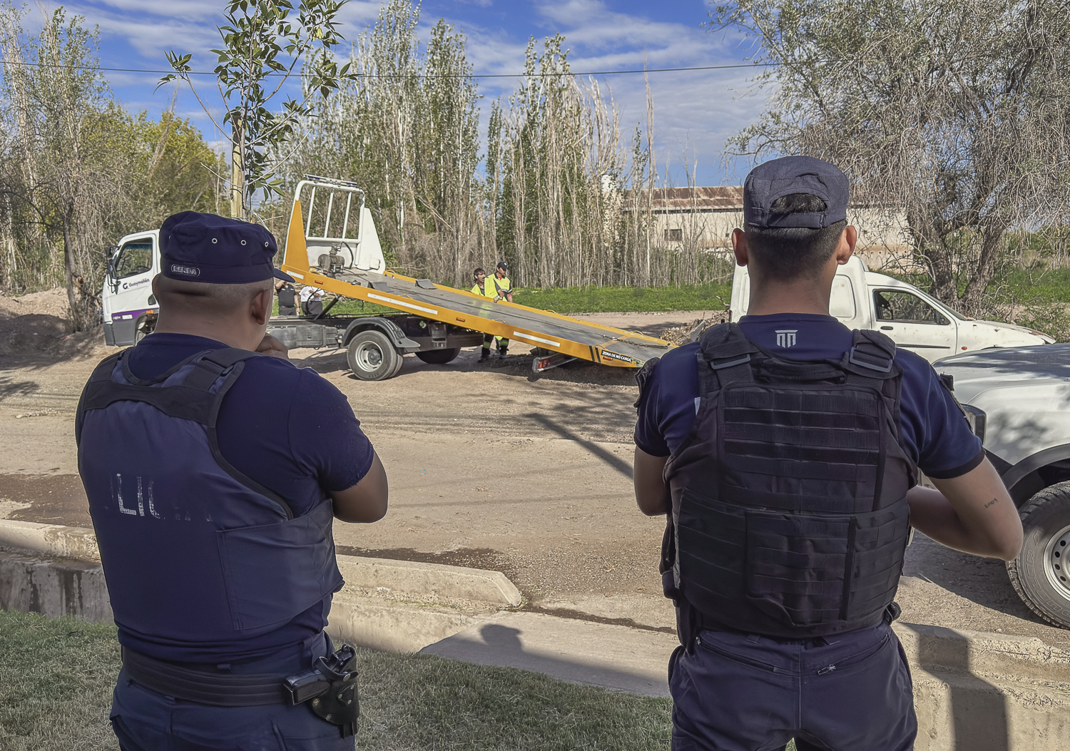 El operativo pasó por Buena Nueva, Las Cañas y Dorrego, en alguna de las locaciones se retiró más de un vehículo estacionado hace tiempo en la calle.