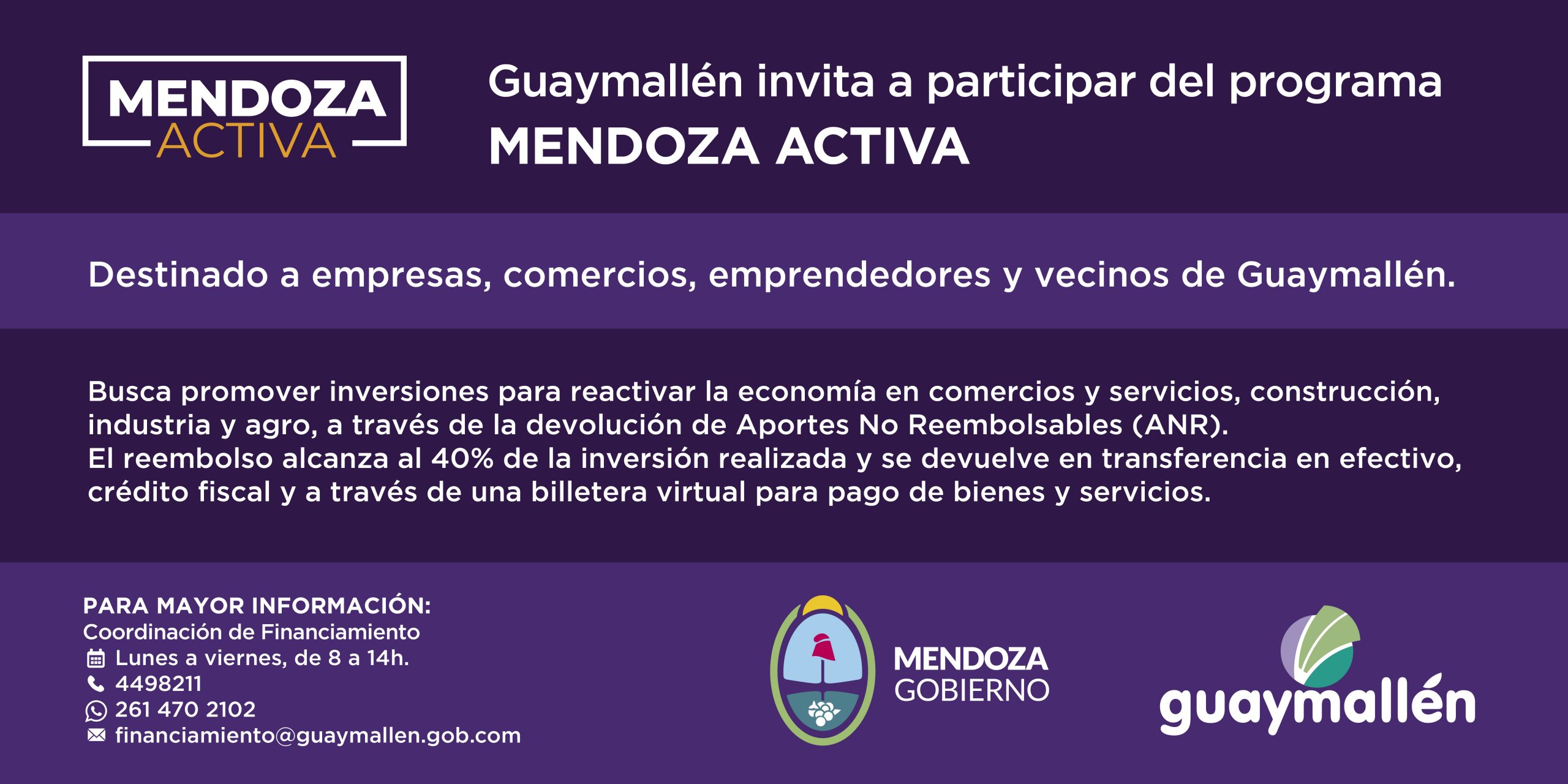El municipio invita a empresas, comercios, emprendedores y vecinos a formar parte de una nueva convocatoria del programa Mendoza Activa, que se realizará desde el 20 de diciembre hasta el 4 de enero de 2021.