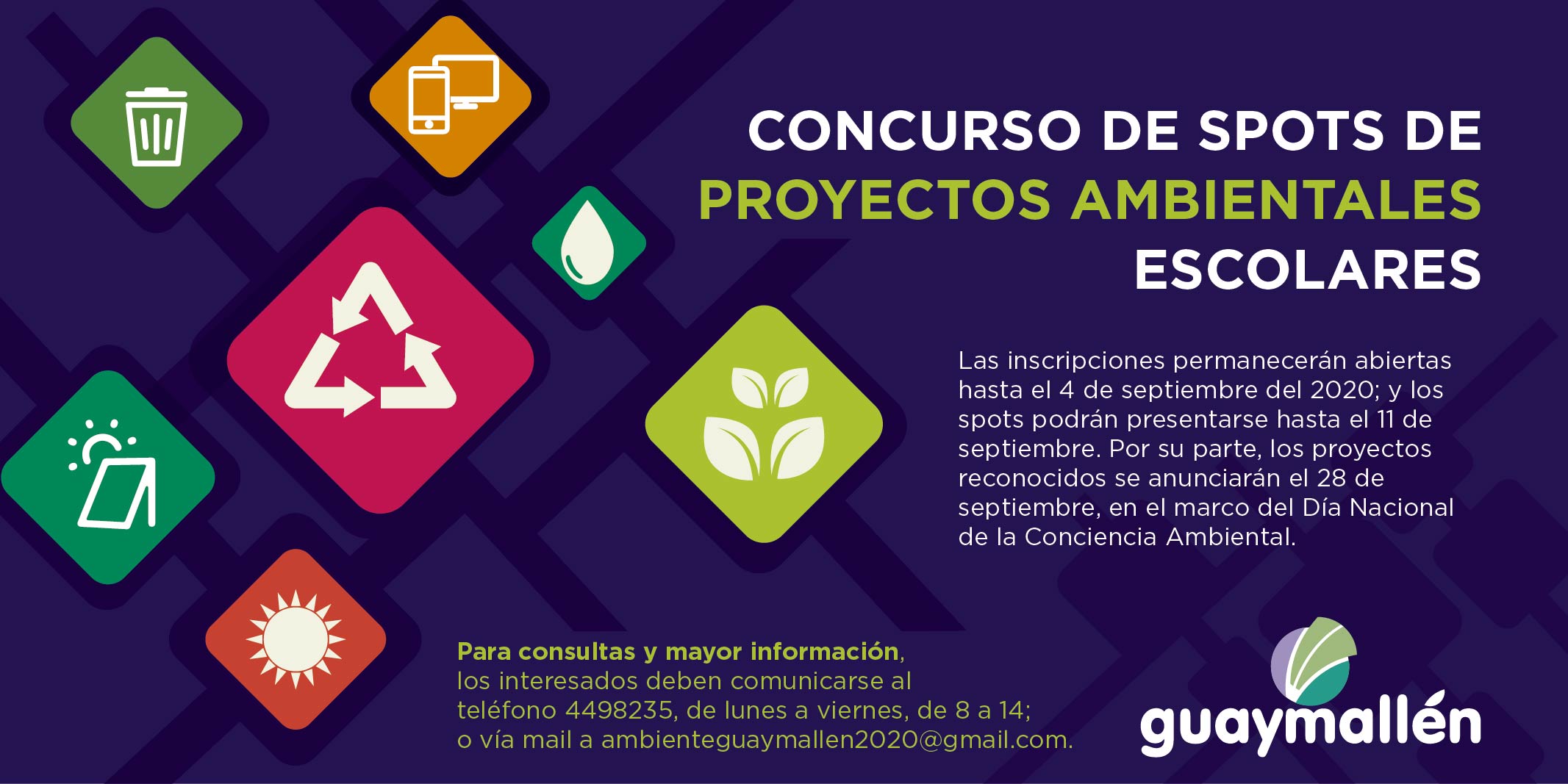 Para consultas y mayor información, los interesados pueden comunicarse al teléfono 4498235, de lunes a viernes, de 8 a 14; o vía mail a ambienteguaymallen2020@gmail.com.