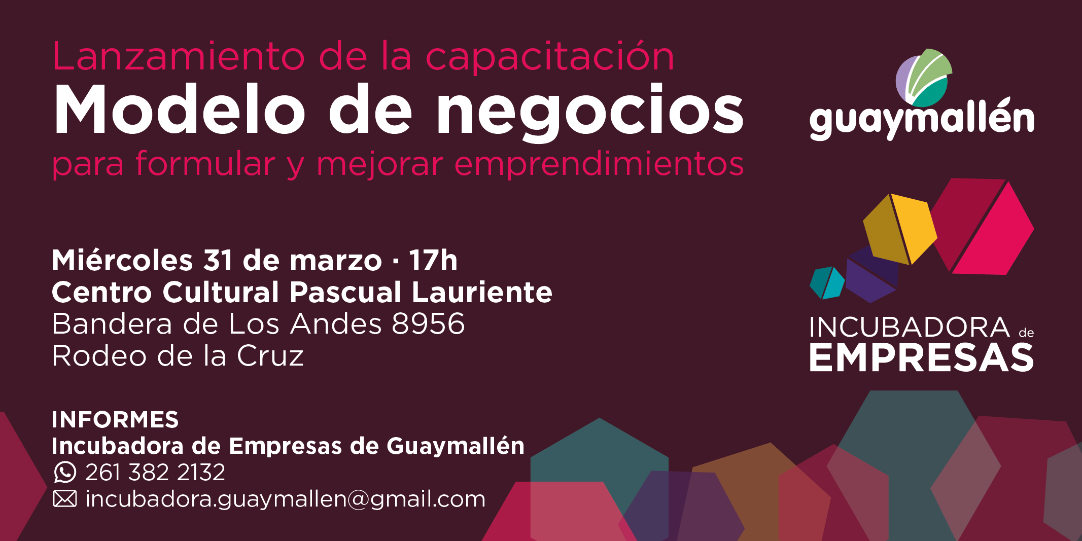 Para más información, pueden comunicarse con la Incubadora de Empresas de Guaymallén vía WhatsApp al https://wa.me/5492613822132 o por mail a incubadora.guaymallen@gmail.com