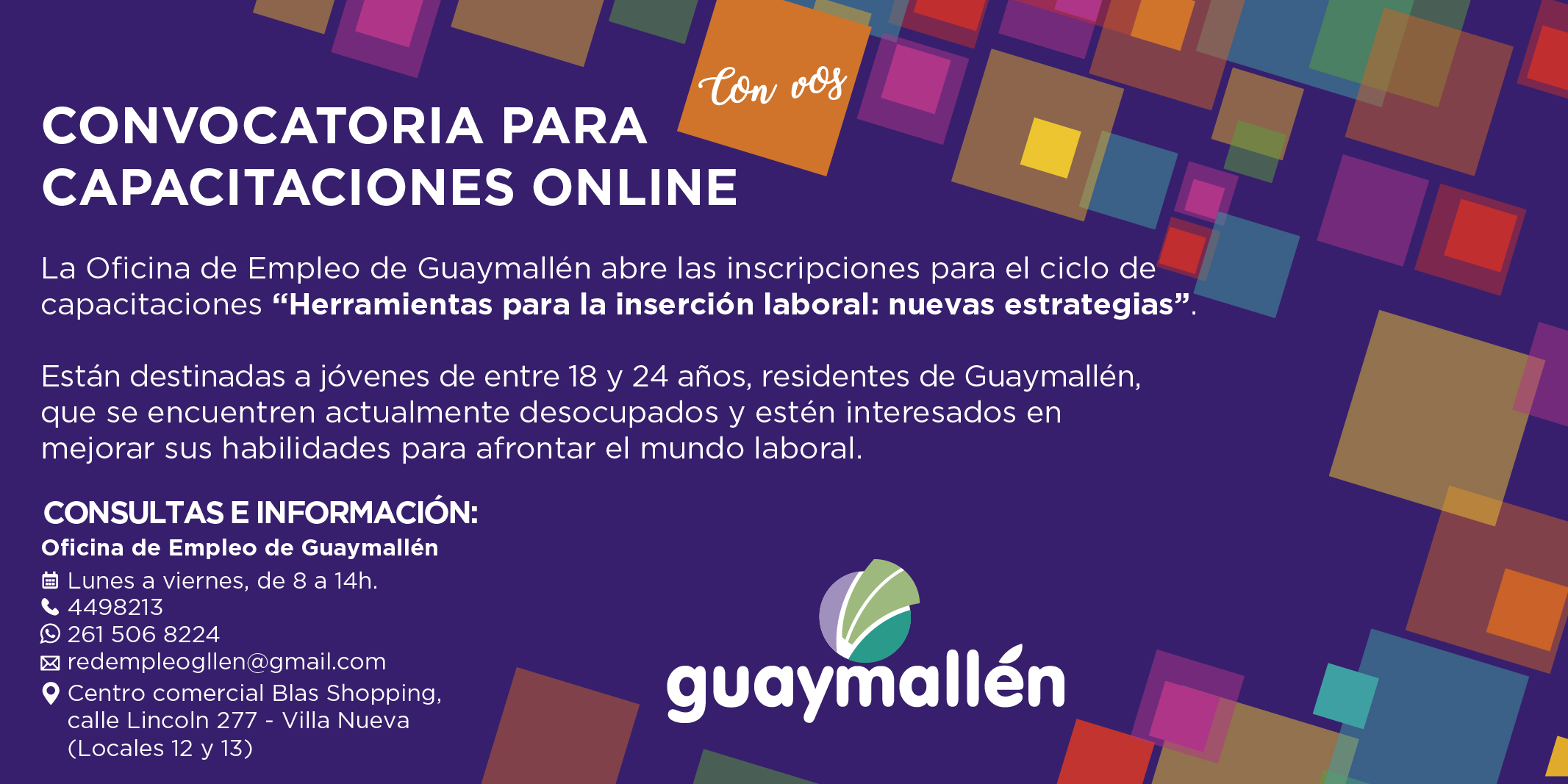 La propuesta está destinada a personas que tengan entre 18 y 24 años de edad y residan en el departamento. Para inscribirse, los interesados deben comunicarse a los teléfonos 4498213 o 2615068224, de lunes a viernes, de 8 a 14h.
