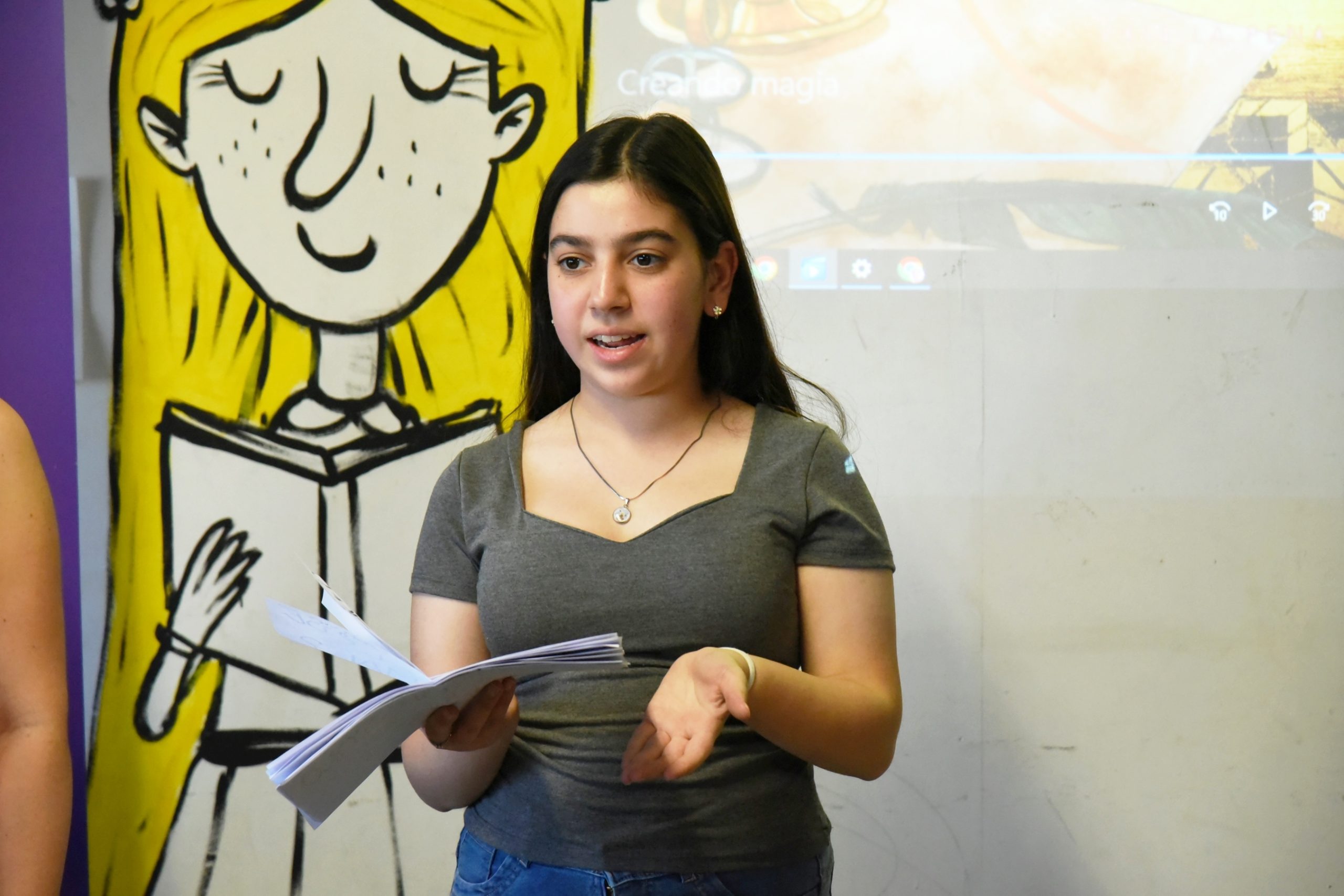 La actividad estuvo a cargo de Amira Sansone Abrahan una joven escritora de tan solo 14 años con un camino prometedor en el mundo de la literatura. Ha participado en diversas capacitaciones, convocatorias literarias y certámenes de microrrelatos de fantasía; y ha publicado su primera novela que se titula “El secreto de la rosa azul”.