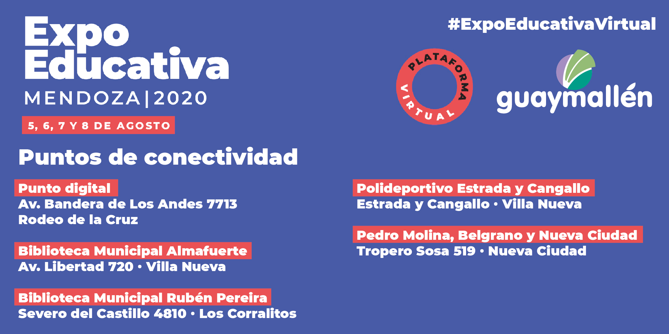 Más información en http://www.prensa.mendoza.gov.ar/se-lanza-la-primera-expo-educativa-mendoza-2020-de-forma-virtual/?fbclid=IwAR0ashJhLF8oMAZOqMDS6lKxSDYq_FNd7SX1rqlDLa2a117CLkFCg_J-7Q0