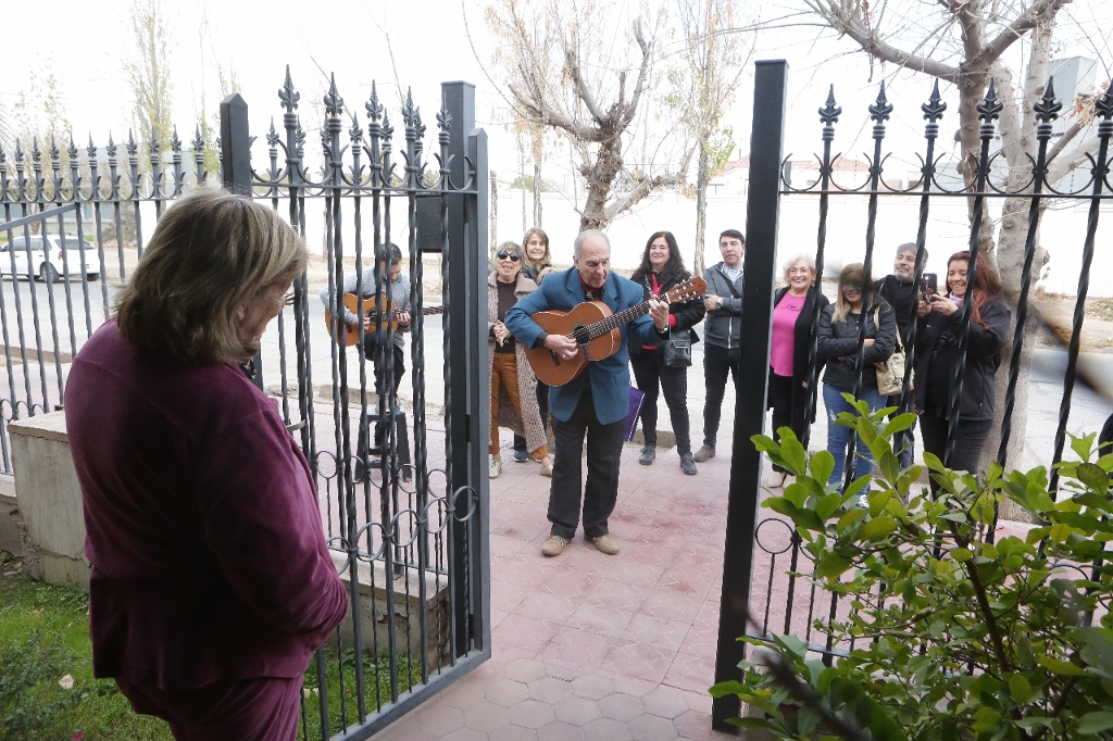 La Municipalidad de Guaymallén continúa homenajeando a los artistas maestros que son parte de la historia cultural del departamento y que han forjado, con su labor, la identidad local. En el día de su cumpleaños, este domingo se agasajó de manera especial a la comunicadora Doris Andreoni con una serenata en la puerta de su domicilio, en Villa Nueva. De la iniciativa participaron los músicos Sergio Santi y la Trova Cuyana, con las guitarras de Adrián Santi y Javier Schillagi.