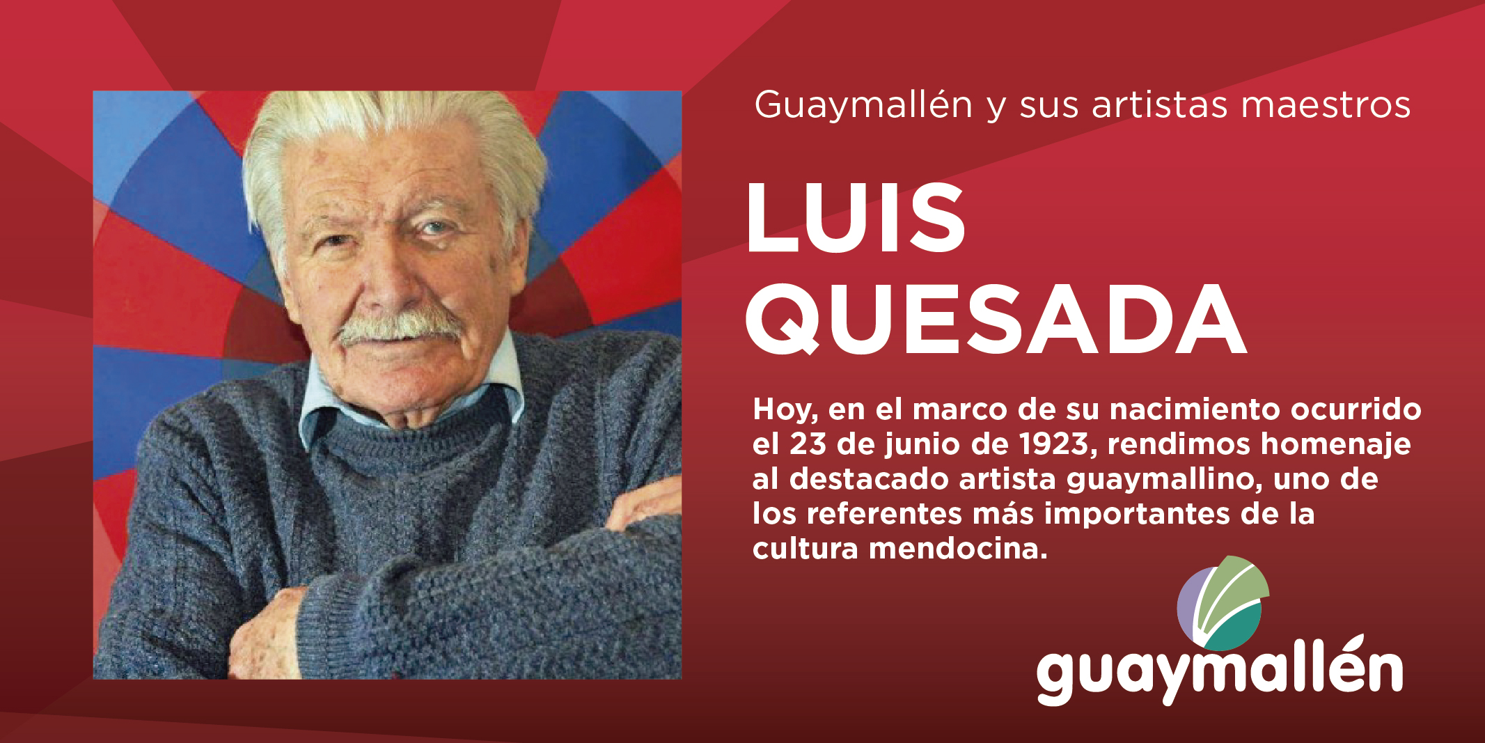 Hace exactamente un año, la Municipalidad comenzó a destacar la trayectoria de los artistas locales a través del espacio “Guaymallén y sus artistas maestros”, teniendo como primer homenajeado al maestro Luis Quesada. Hoy, al cumplirse 98 años de su natalicio, se resalta nuevamente la obra de este gran hacedor cultural, referente del arte a nivel nacional.