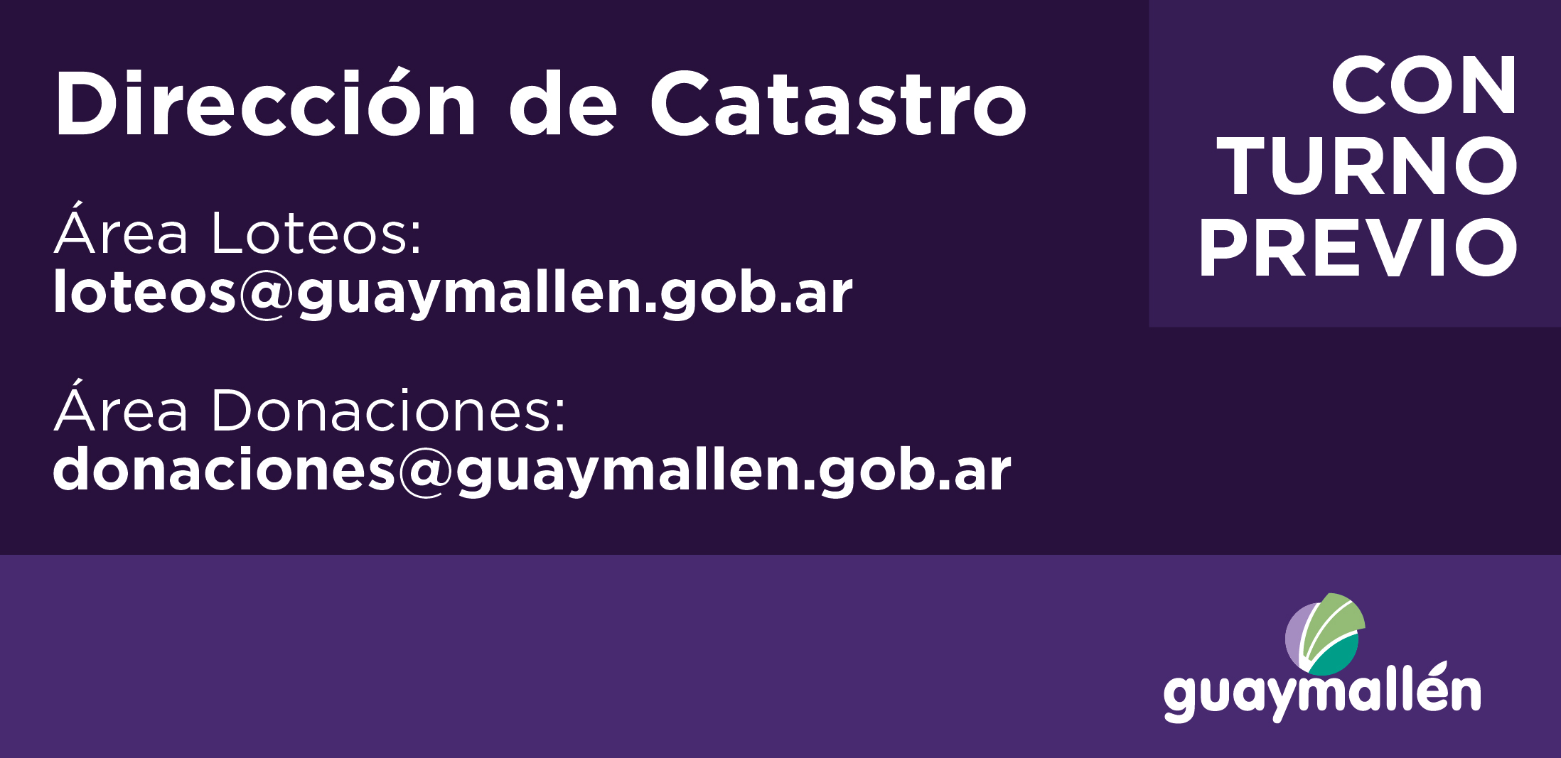 La Municipalidad de Guaymallén informa que, a partir de esta semana, la Dirección de Catastro solo brindará atención con turno previo.