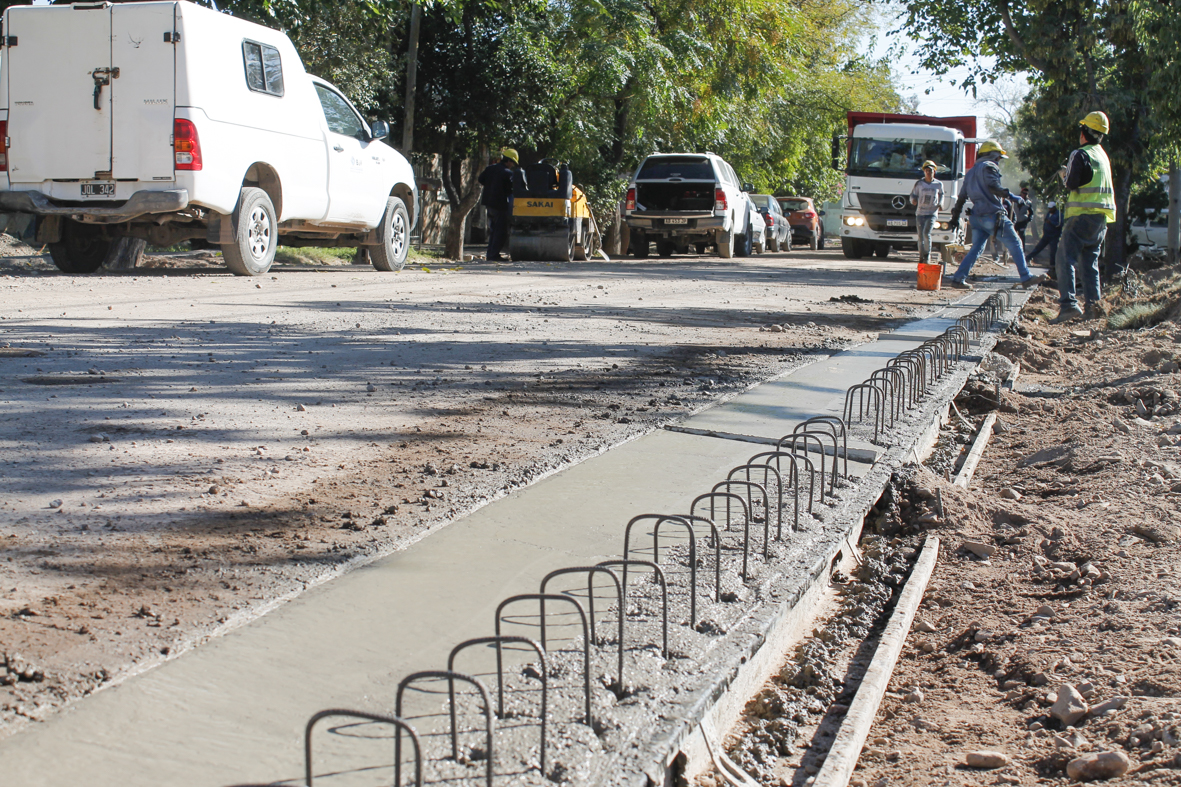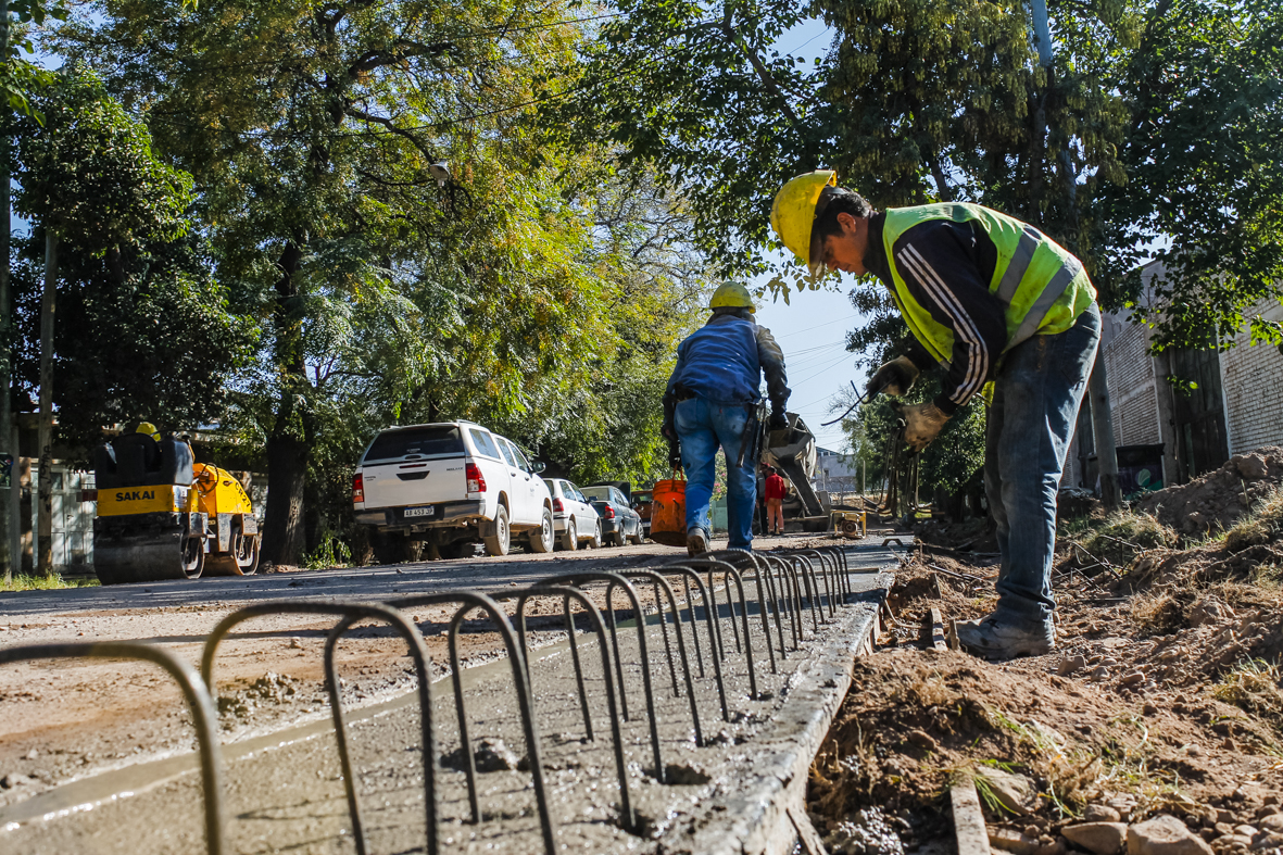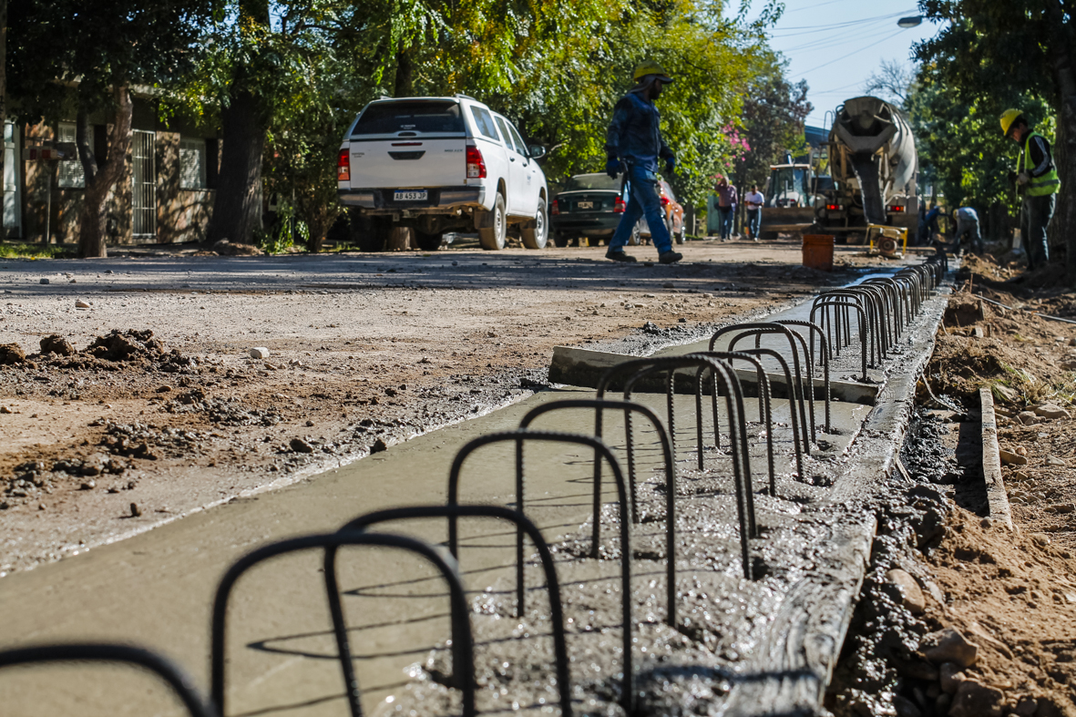 En calle Paraguay se construyen cordones, cunetas y banquinas en hormigón sobre ambas márgenes, en el tramo comprendido entre el carril Godoy Cruz y las vías del ferrocarril. El trabajo incluye también alcantarillas y puentes vehiculares.
