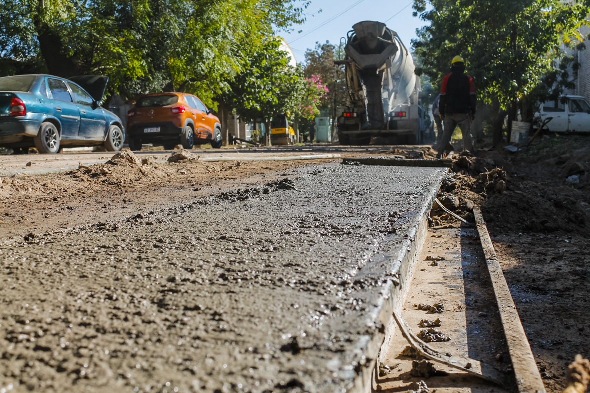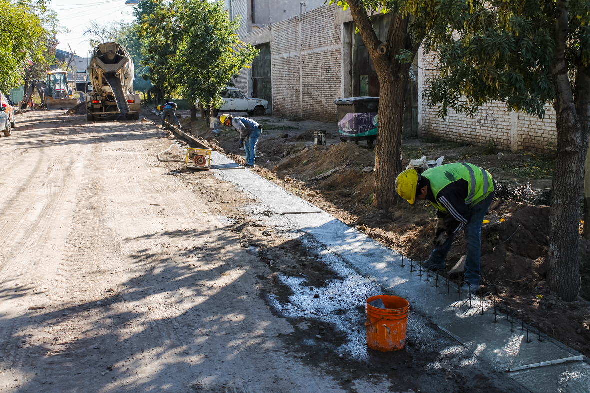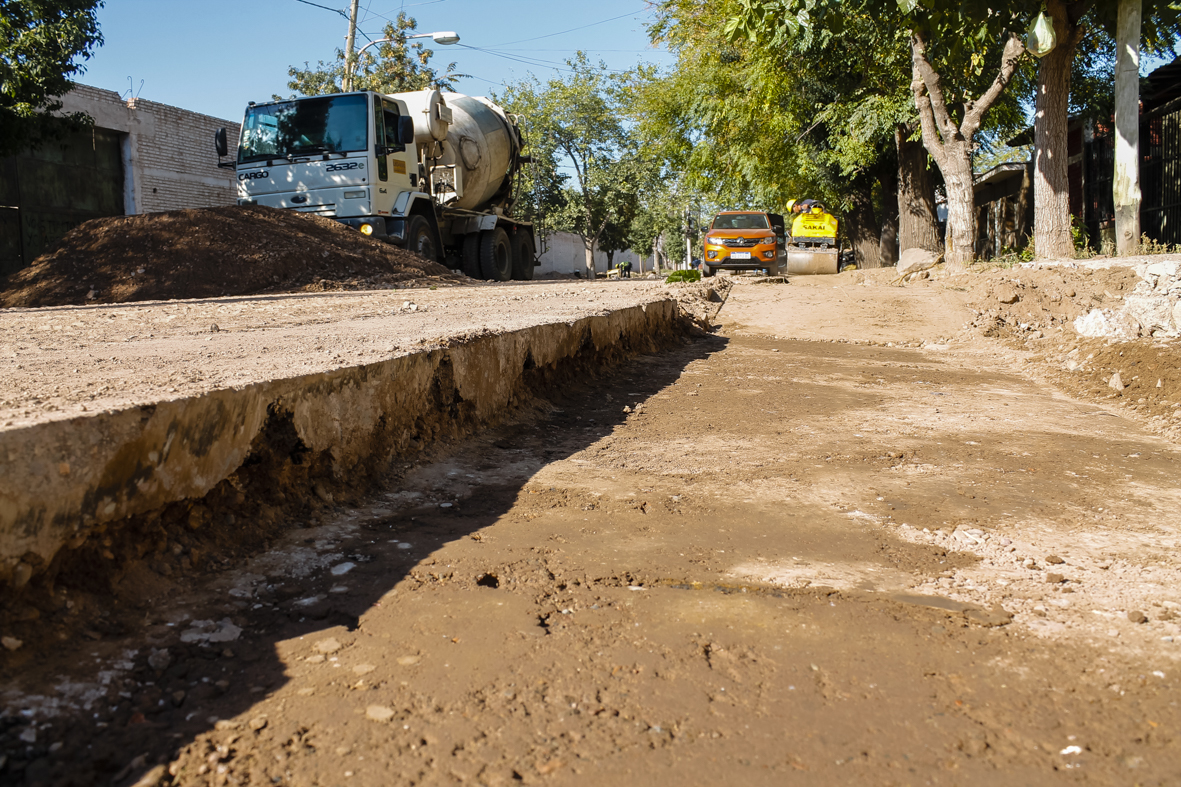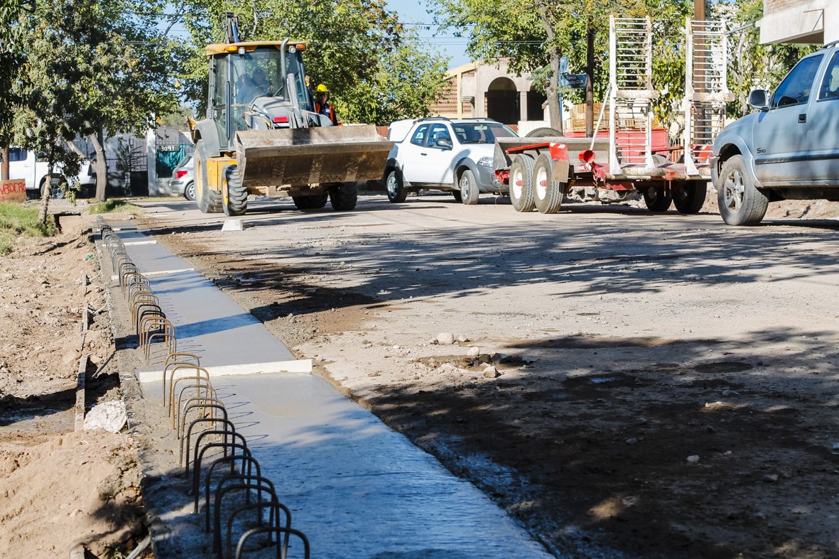 En calle Paraguay se construyen cordones, cunetas y banquinas en hormigón sobre ambas márgenes, en el tramo comprendido entre el carril Godoy Cruz y las vías del ferrocarril. El trabajo incluye también alcantarillas y puentes vehiculares.