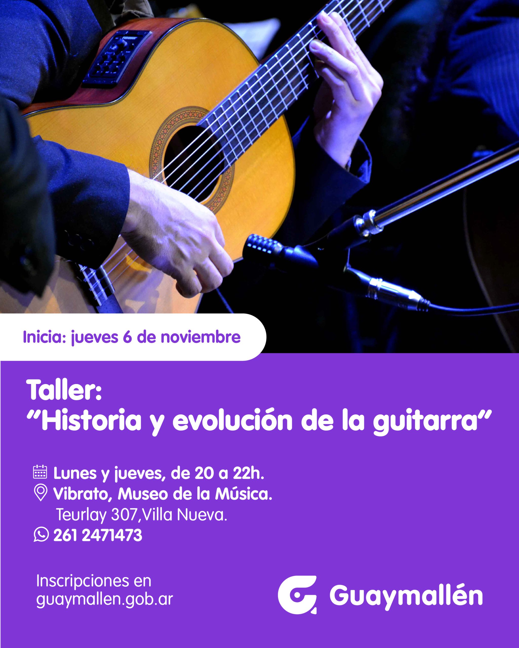 La Municipalidad de Guaymallén invita a participar del taller “Historia y evolución de la guitarra”, una propuesta teórico-práctica que recorre la historia de uno de los instrumentos más emblemáticos de la música y la cultura regional. El curso tendrá una duración de cuatro semanas, se dictará en Vibrato Museo de la Música (Teurlay 307 de Villa Nueva) los lunes y jueves de 20 a 22h, y estará a cargo del lutier Emiliano Dalmau.