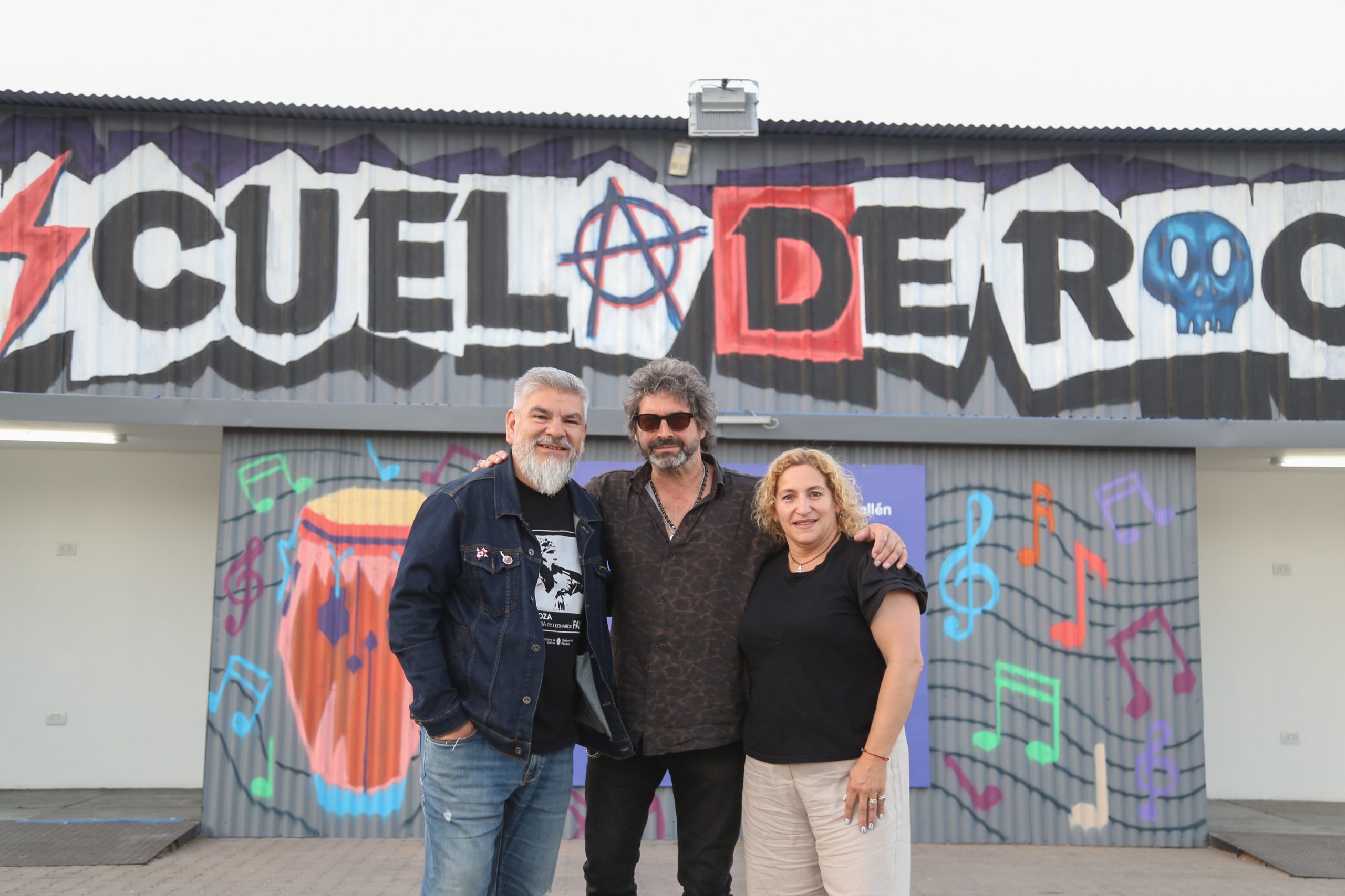 Aprovechando su estadía en la provincia, fue invitado también a conocer la sede de la Escuela Municipal de Rock Mario Mátar, única en su tipo en Mendoza, que está ubicada en la explanada del Espacio Cultural Julio Le Parc. Allí, recorrió las instalaciones acompañado por el subsecretario de Cultura de la Provincia, Diego Gareca, y la directora de Cultura y Turismo de Guaymallén, Carolina Vico. Además, dejó su firma grabada en una de las paredes del establecimiento en la que también otros músicos destacados han dejado su marca.
