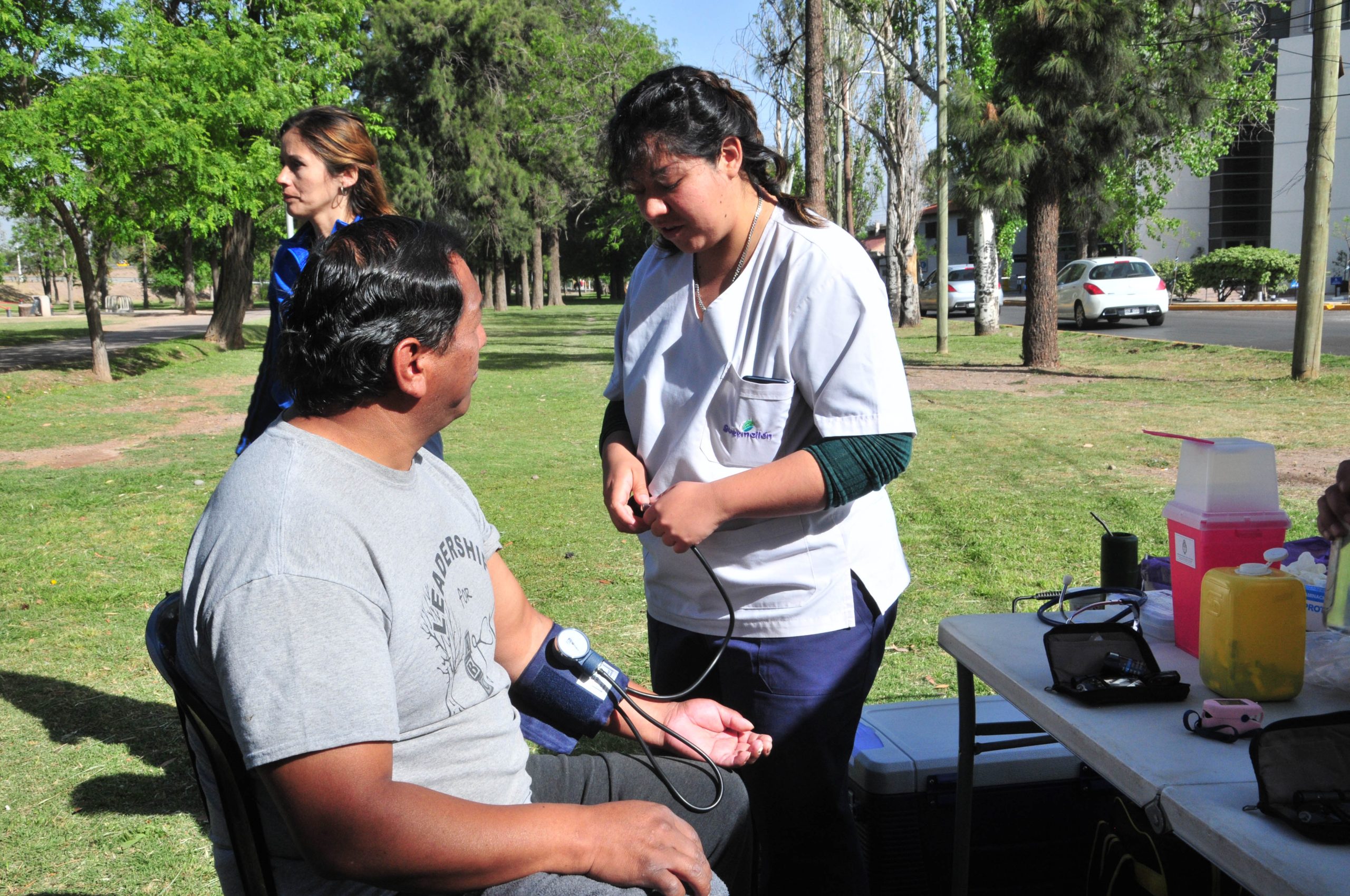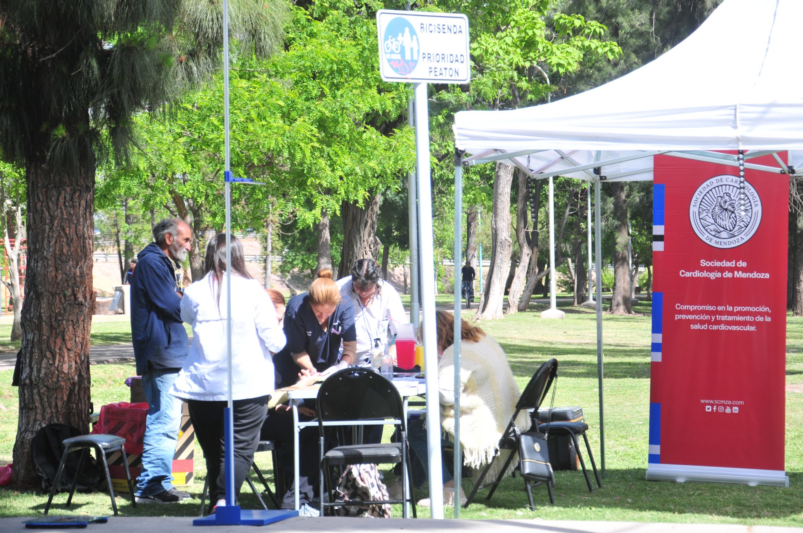 En el espacio verde ubicado frente al Mendoza Plaza Shopping, profesionales de la Municipalidad de Guaymallén y la Sociedad de Cardiología de Mendoza realizaron controles de tensión arterial y toma de glucemia, peso y talla; con el objetivo de evaluar o detectar factores de riesgo cardiovascular en la comunidad. También electrocardiogramas, vacunación antigripal, talleres de RCP y consejería de hábitos de vida saludable.