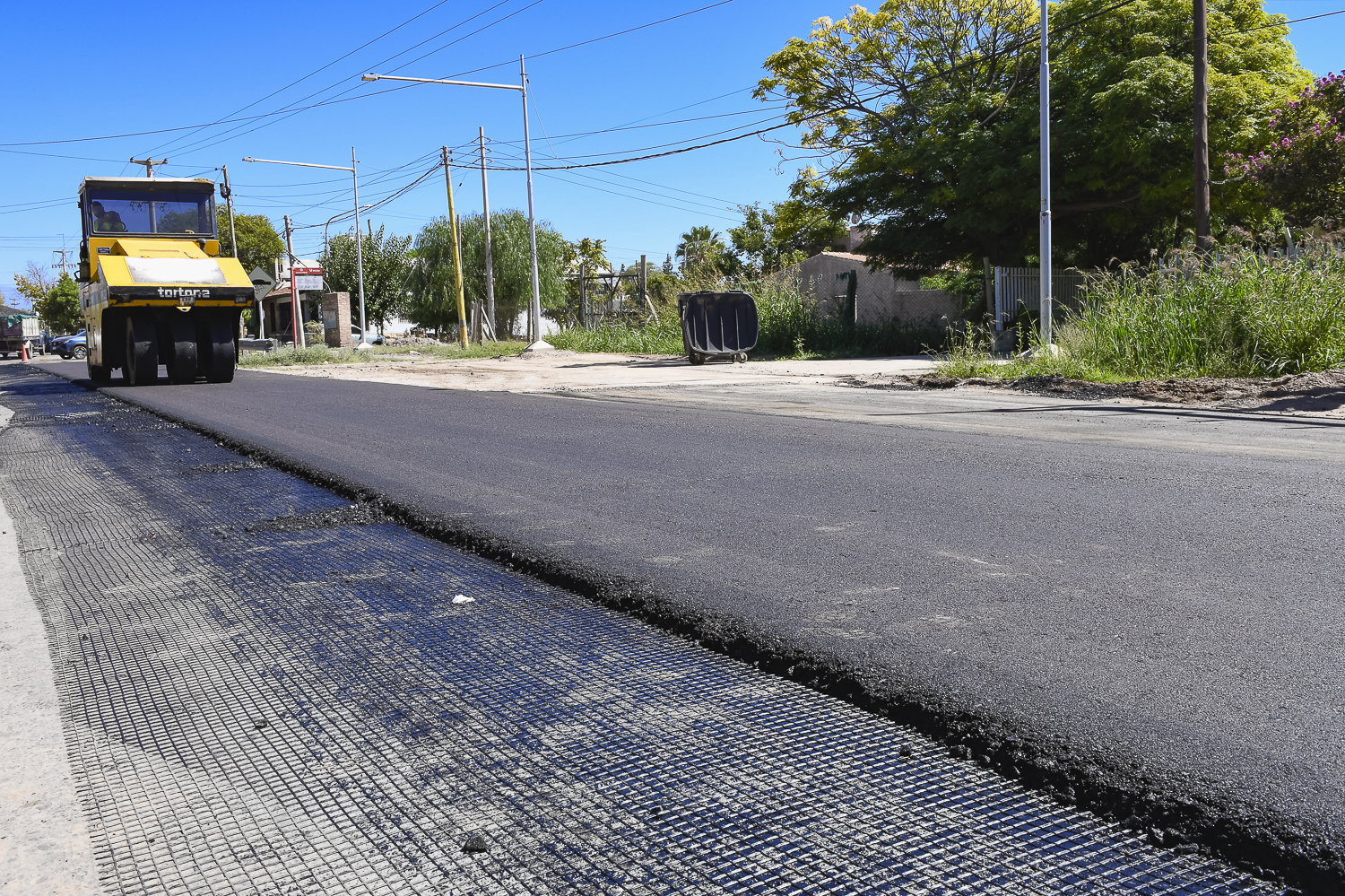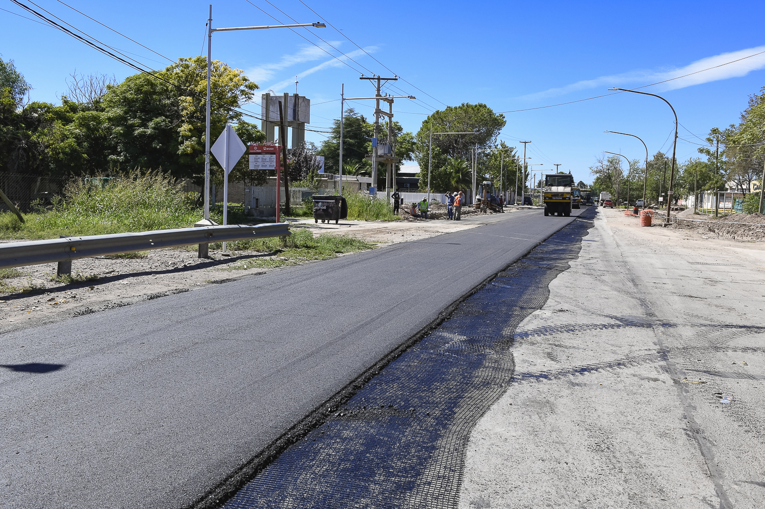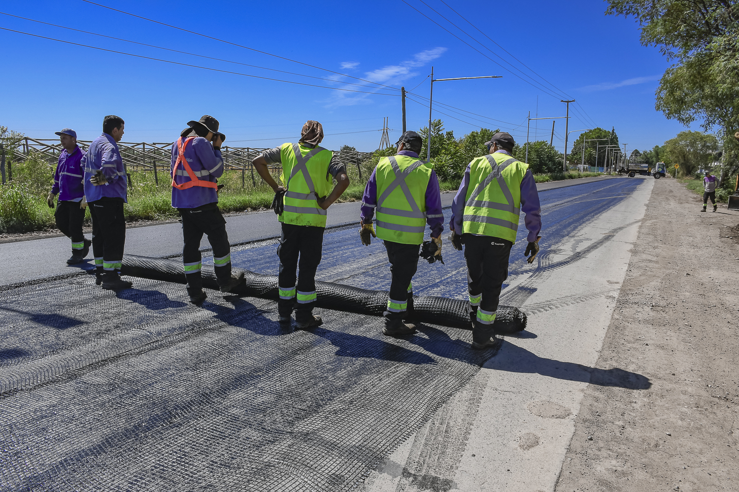 A lo largo de 1.400 metros, estos trabajos comenzaron con el sellado de fisuras existentes y la colocación de una geogrilla. El novedoso material es un geocompuesto de última generación que se utiliza para el reencarpetado. El mismo está conformado por un geotextil de base y una geogrilla que combinados permiten absorber las tensiones y deformaciones de la calzada.