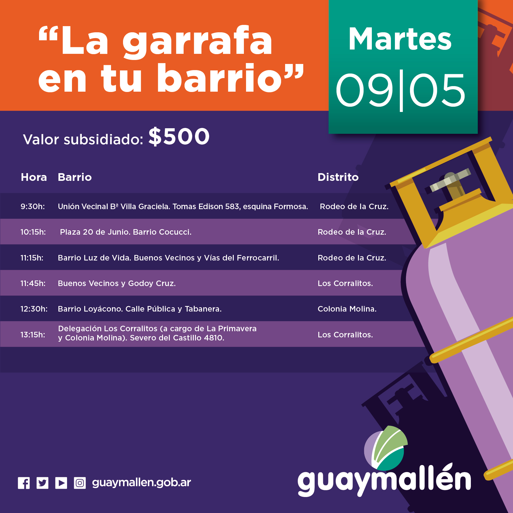 Las familias del departamento pueden realizar la compra de hasta dos recargas de garrafas de 10 kg a $500 cada una, gracias al subsidio municipal. Para acceder a dicho beneficio, deben presentar fotocopia del DNI y Certificación Negativa de ANSES. Las personas jubiladas o pensionadas tienen que llevar fotocopia del carnet de PAMI y/o de jubilado/a; mientras que las personas con discapacidad deben llevar fotocopia del CUD (certificado único de discapacidad).