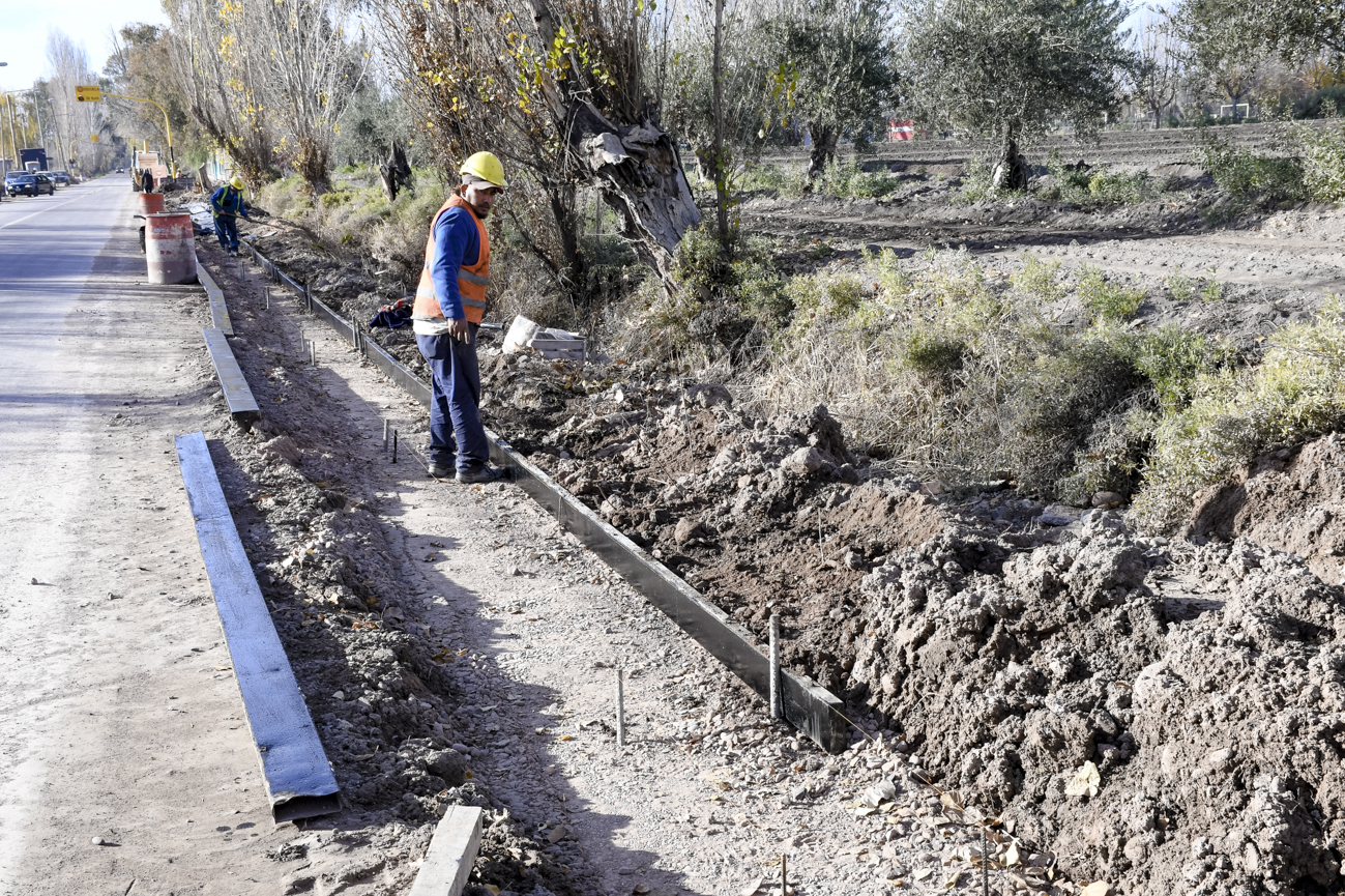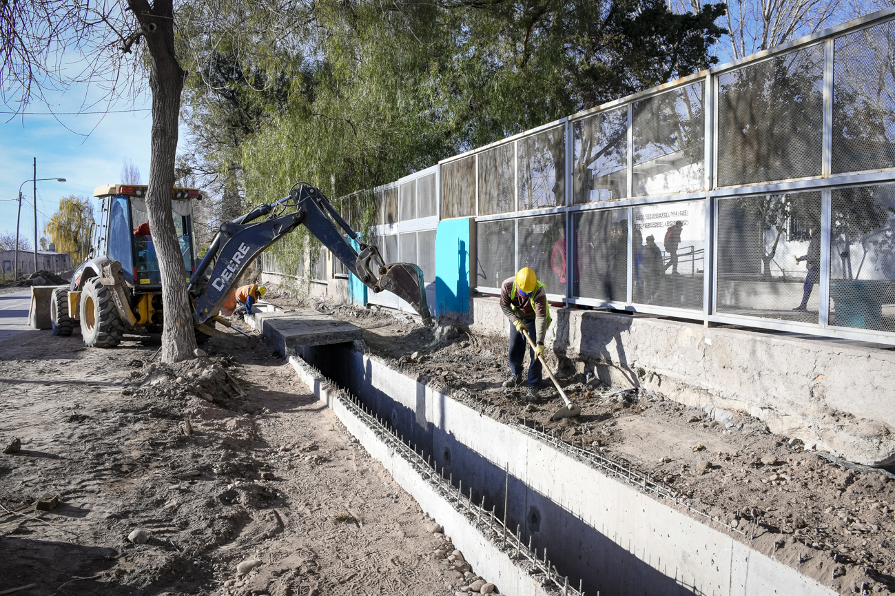 Los trabajos comprenden la construcción de veredas de hormigón, puentes, accesibilidad para sillas de ruedas, señalética, apeaderos e iluminación LED en todo el entorno de la escuela. En este caso puntual también se está realizando el revestimiento de canales, así como el trazado de una ciclovía, la que se extenderá hasta calle Severo del Castillo.