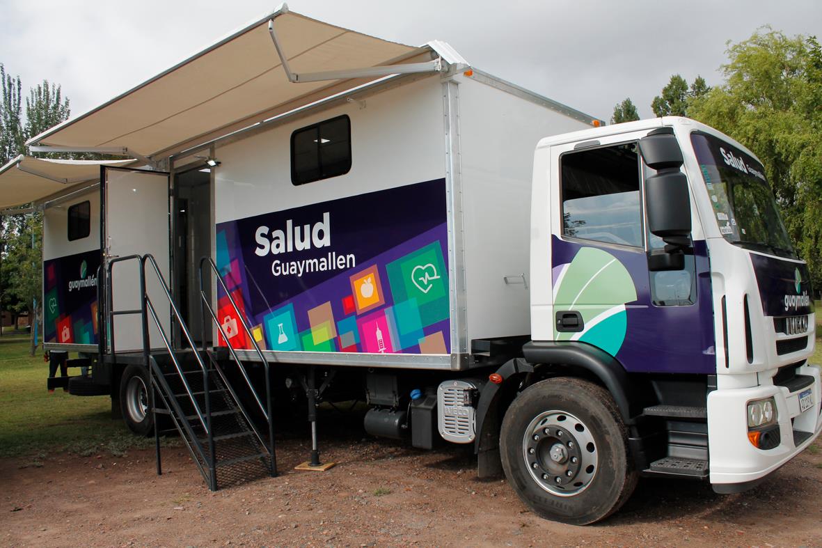 Desde el mes de febrero, la Municipalidad de Guaymallén ha puesto a disposición de la comunidad esta Unidad Móvil Sanitaria, que posee consultorios destinados a niños y adultos. Para acceder a esta prestación, los interesados deben solicitar anticipadamente los turnos en la delegación más cercana a sus domicilios.