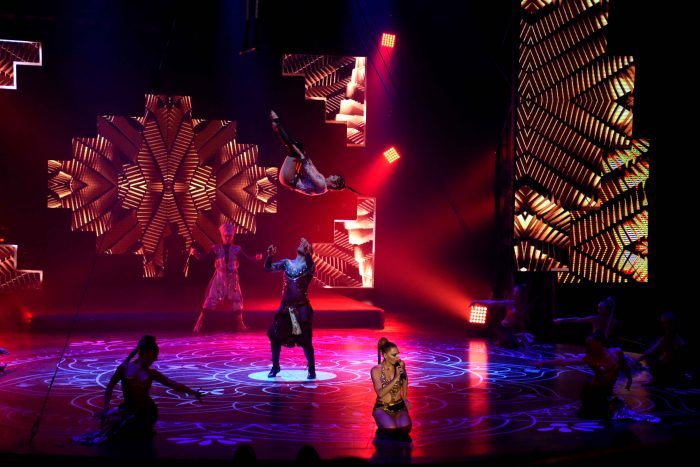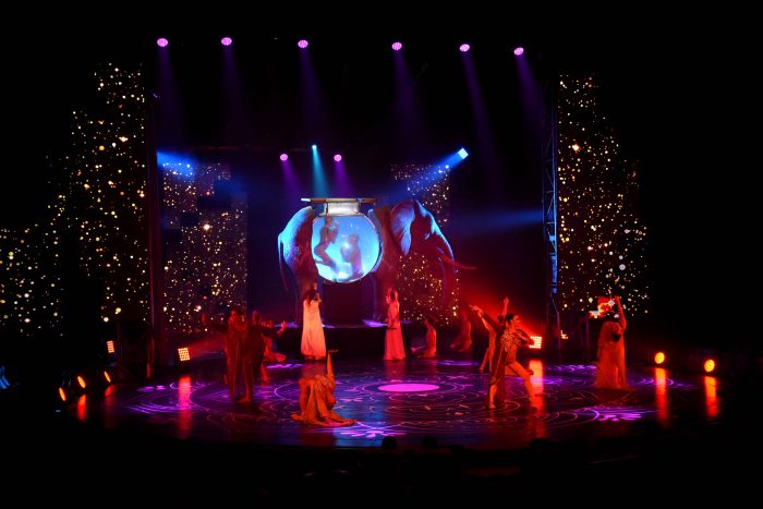 Dedicado a su hijo Dionisio e inspirado en un viaje a la India, Flavio Mendoza ideó este show para disfrutar en familia. La producción de alto vuelo devuelve al púbico el espíritu antaño del circo y amalgama las risas, la elegancia acrobática y las emociones. Lo que por momentos parecen trucos de magia son en verdad el gran talento y la destreza de 35 artistas, que con sus trajes de brillantes se desenvuelven sobre un doble escenario acompañados por música en vivo, animaciones 3D, luces y pantallas de última generación. Todo está montado en una carpa suspendida por un arco que permite una visión plena de 360º. La técnica resulta por demás innovadora en el país, teniendo en cuenta que hasta entonces sólo se había implementado en Europa.