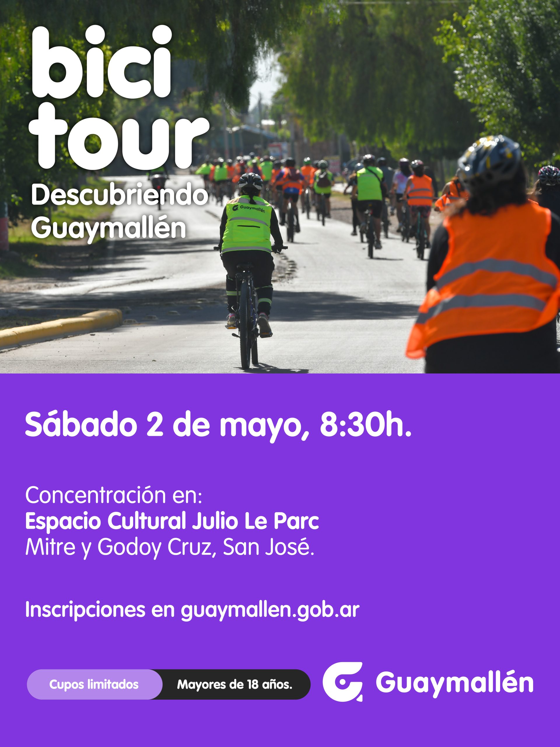 En el marco del mes aniversario del departamento, el próximo sábado 2 de mayo se realizará una nueva edición del “Bicitour descubriendo Guaymallén”, una propuesta pensada para disfrutar, recorrer y redescubrir la historia y los espacios emblemáticos que forman parte del patrimonio cultural local.