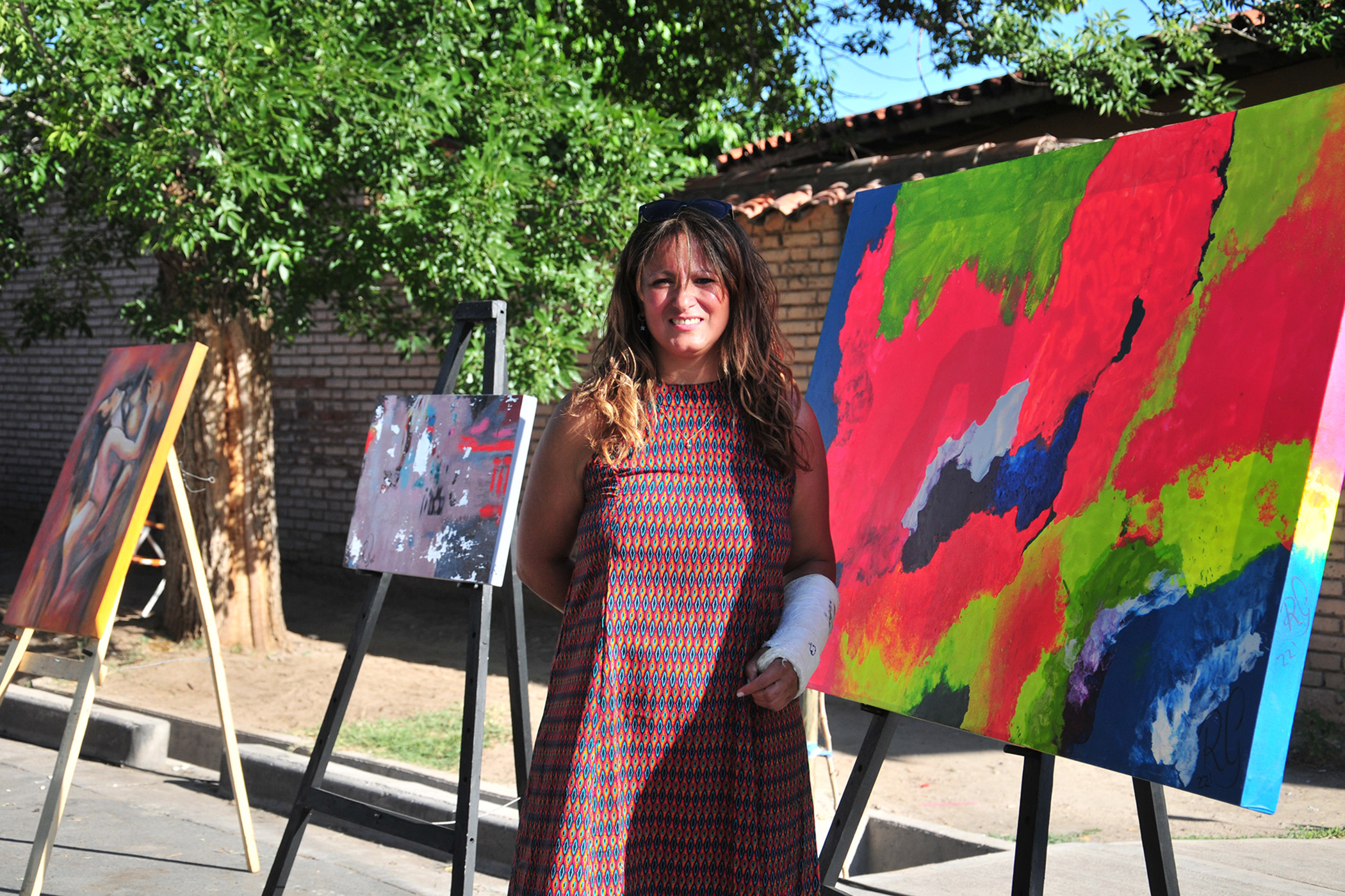 Roxana González demostró su talento durante una intervención en tiempo real, dentro del ciclo Muestras al Sol. La artista mendocina nació el 29 de noviembre de 1976. Durante años fue autodidacta; vivenció distintos talleres con grandes artistas y profesores de Mendoza y el resto del país, que acrecentaron sus intereses y dieron lugar a la búsqueda de nuevos rumbos. Los procesos creativos de la contemporaneidad han sido fundamentales para aprender y compartir sus conocimientos; además, se han convertido en parte de su vida, no sólo como una herramienta de comunicación sino también de sensibilización. Fue profesora de pintura decorativa del conservatorio Grassi y en la actualidad se entusiasma con el reciclado, las texturas, lo abstracto y lo figurativo, orientados a lo decorativo. En su taller comparte experiencias, saberes y nuevos proyectos. Considera que: “La pintura es realmente satisfactoria en la medida que se lleve a cabo, en la dedicación y en permitirse sorprender, sorprenderse y aprender hasta el más mínimo detalle”.