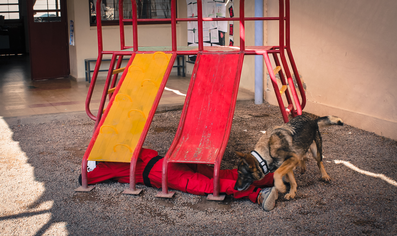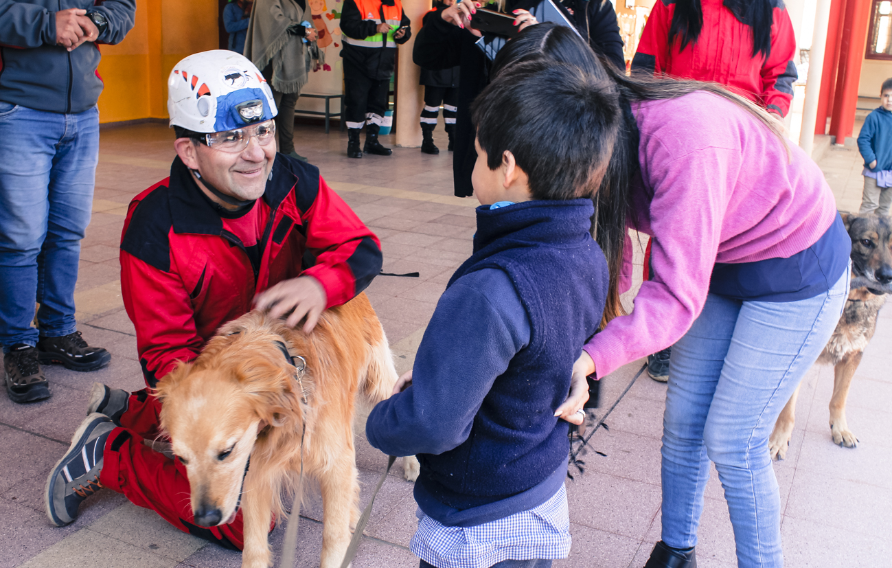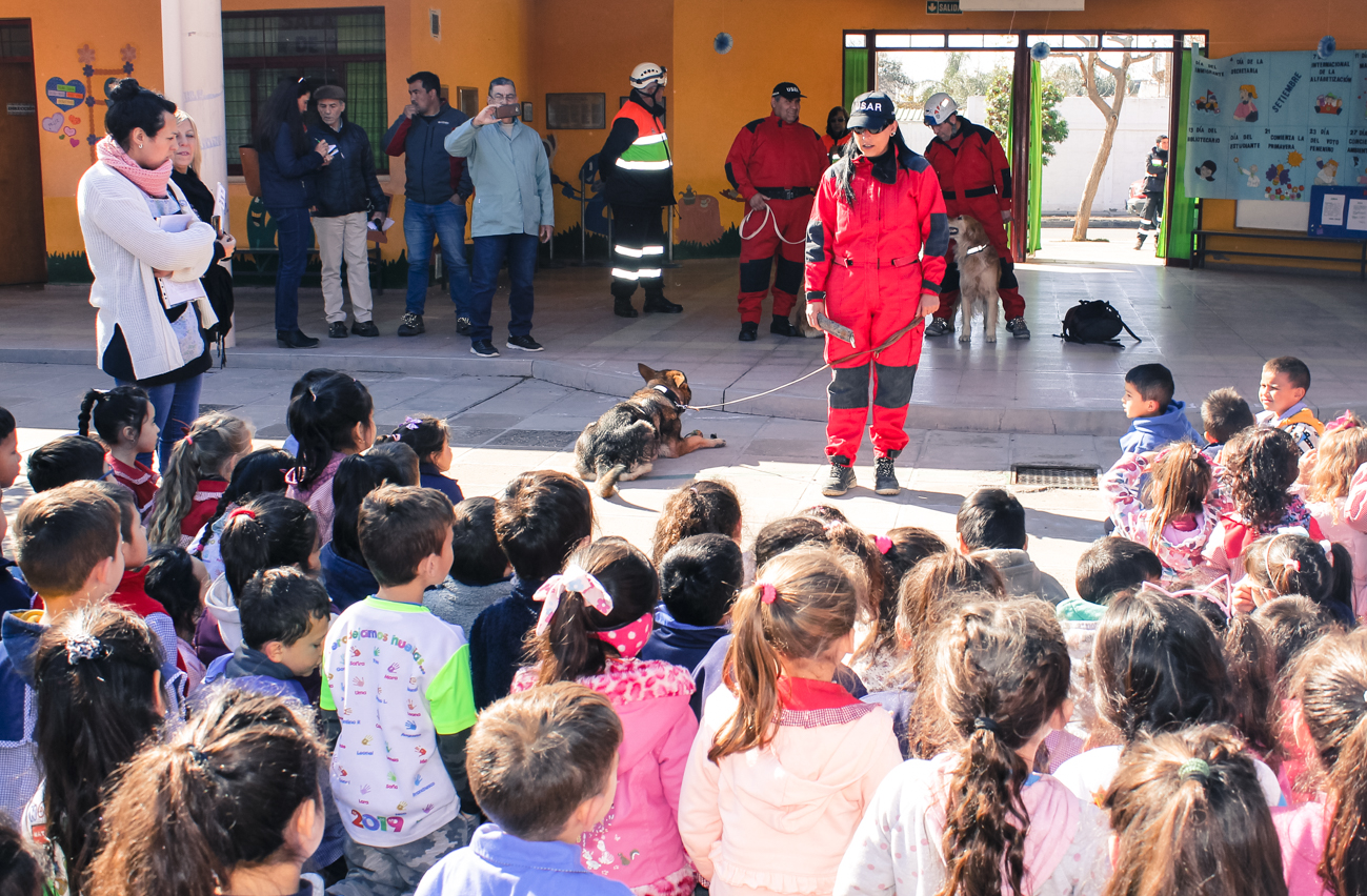 Los niños participaron activamente del simulacro que tuvo como protagonistas a los canes transformados en verdaderos héroes de cuatro patas, preparados para labores de búsqueda de desaparecidos en incendios, derrumbamientos u otras catástrofes. Son perros que poseen características especiales en cuanto a: peso, altura, destreza y rapidez, unidas al desarrollo de sus sentidos.
