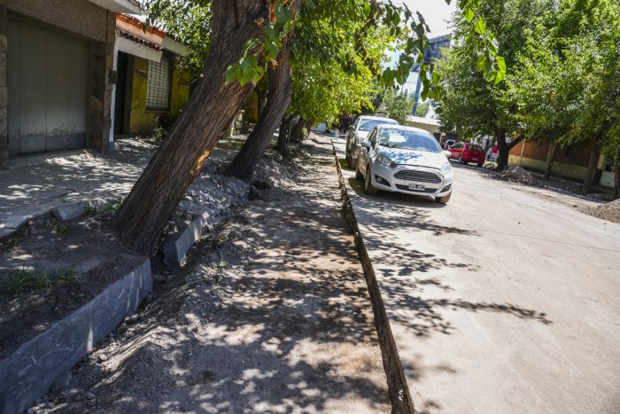 El Plan de Intervenciones Urbanas IV ya trabaja en un nuevo sector del distrito Dorrego. Sobre calle Guayaquil, entre 25 de Mayo y Laprida, avanza la construcción de desagües revestidos en hormigón.