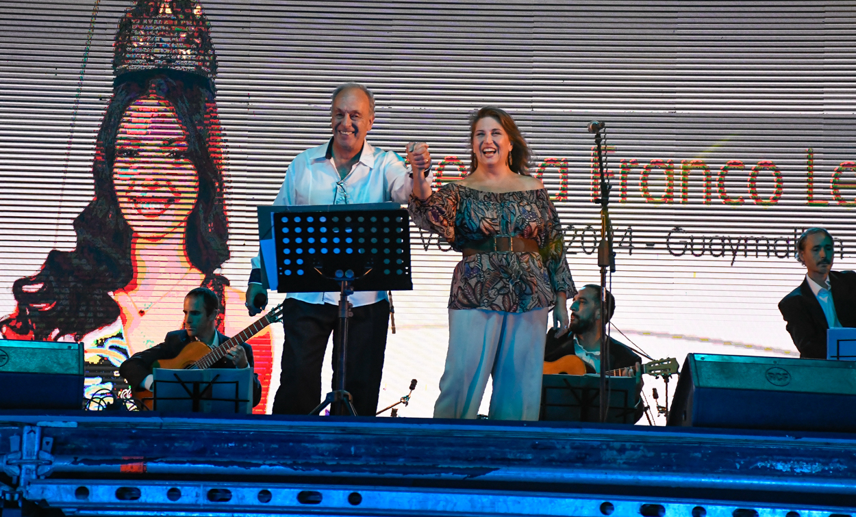 Se entrelazaron la danza, la música y la poesía en un espectáculo que contó con la destacada participación de Angelina Franco Leiva, la embajadora de Guaymallén, bailó un gato y un vals cuyano, y protagonizó un “Obligo”, junto a uno de los artistas más reconocidos de la música cuyana Sergio Santi -se trata de un acto tradicional en el que una persona desafía a otra a tomar de un solo trago un poco de vino, quien acepta el “obligo”, responde “le pago” y bebe-.