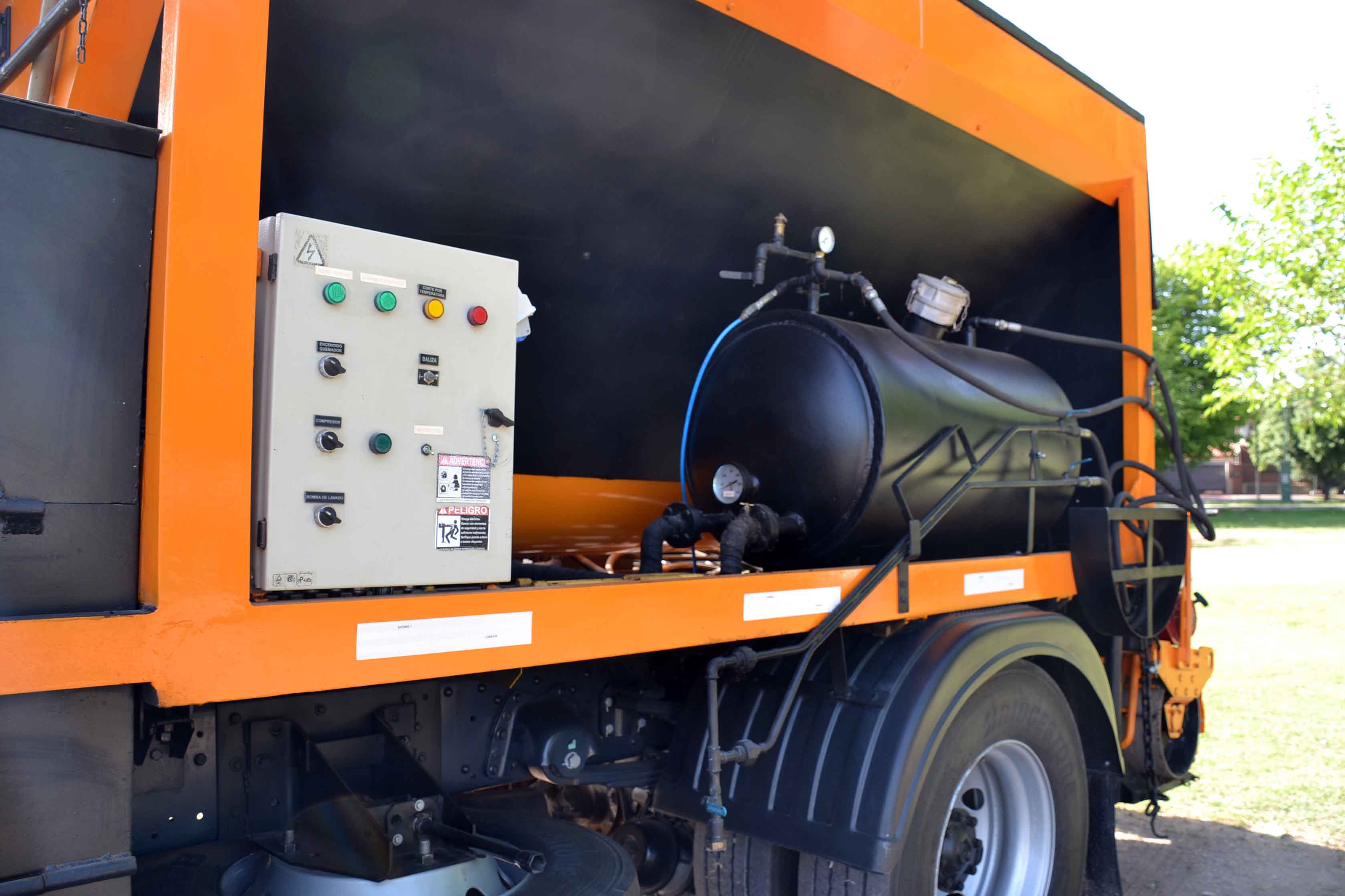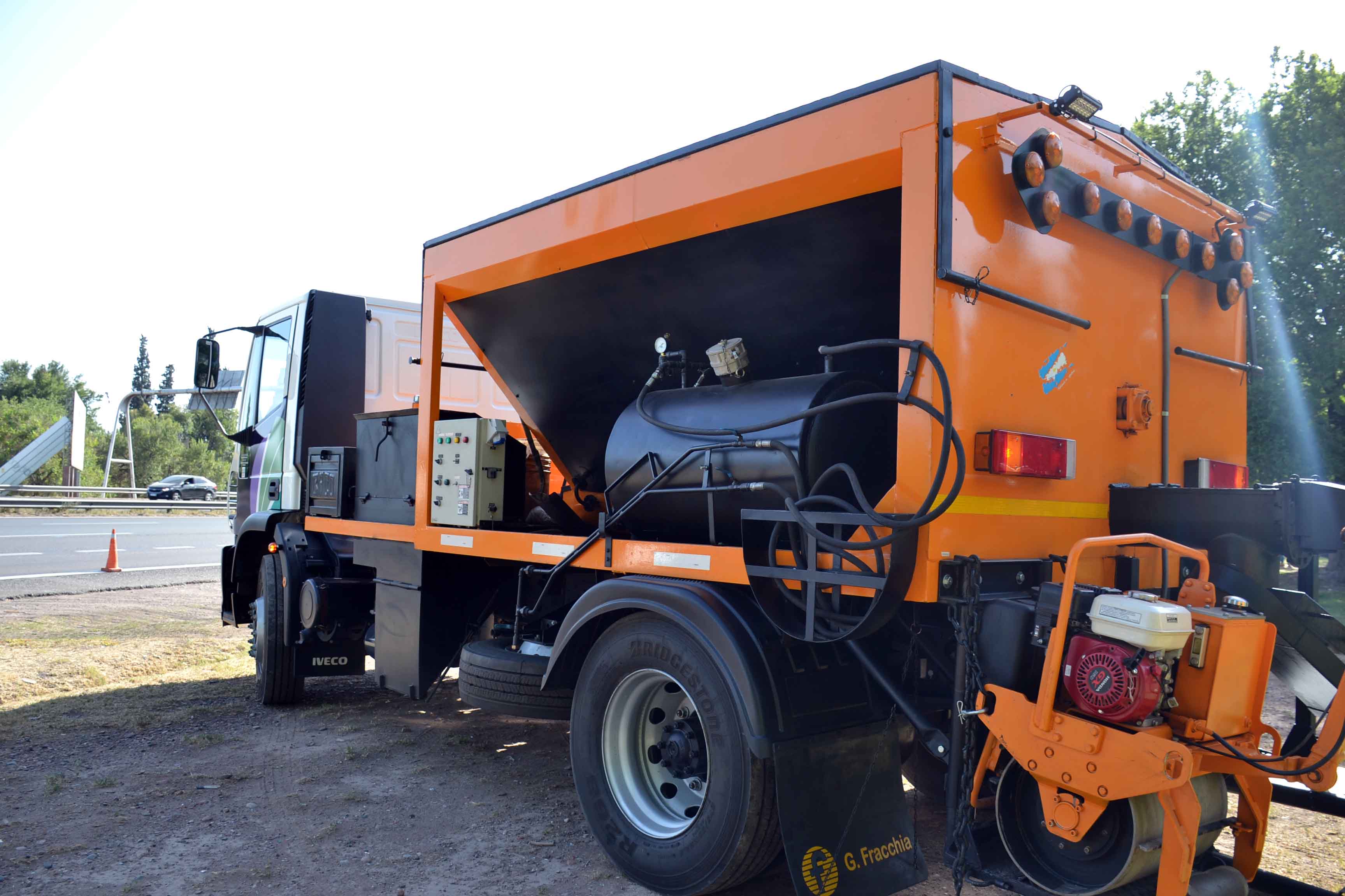 En el mismo predio verde, fue exhibido el equipo integral de bacheo recientemente acondicionado, que se moviliza también en un camión Iveco Tector 170 E28 0 km. Al igual que las 9 unidades destinadas a servicios públicos, posee última tecnología en cuanto a emisión, está catalogado como Euro V y prevé elementos de seguridad como sistema de airbag y frenos ABS. Esta adquisición marca un antes y un después en el mantenimiento vial, ya que repara los baches de las arterias en el menor tiempo posible.