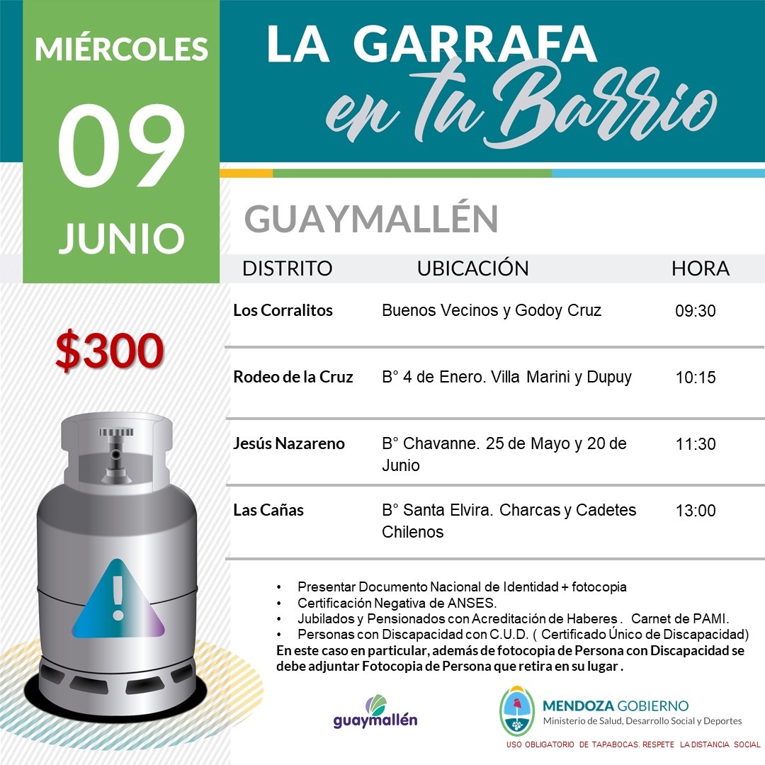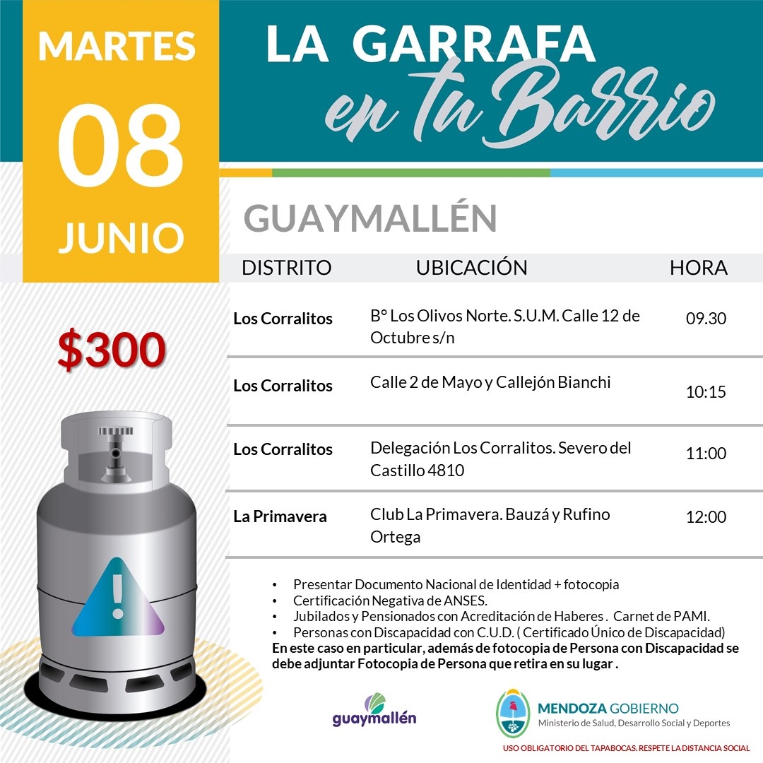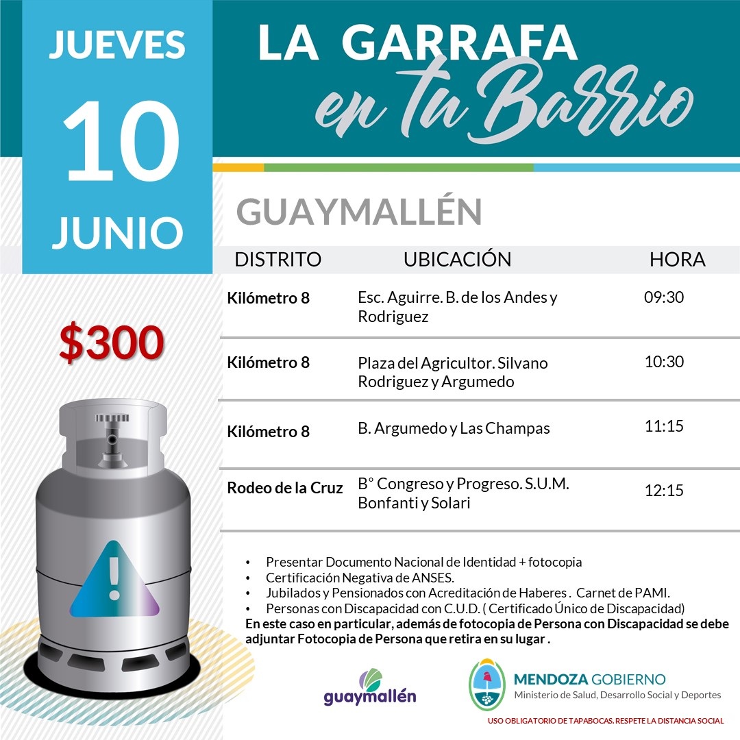 Los días martes 8, miércoles 9 y jueves 10 de junio, las familias podrán adquirir hasta dos garrafas a $300. Se trata de un operativo subsidiado con fondos provinciales, que se extenderá durante todo el periodo invernal. Para acceder a dicho beneficio es necesario presentar fotocopia del DNI y Certificación Negativa de ANSES. Esta propuesta también incluye a jubilados, pensionados y personas con discapacidad que acrediten su condición con carnet y/o CUD (certificado único de discapacidad).