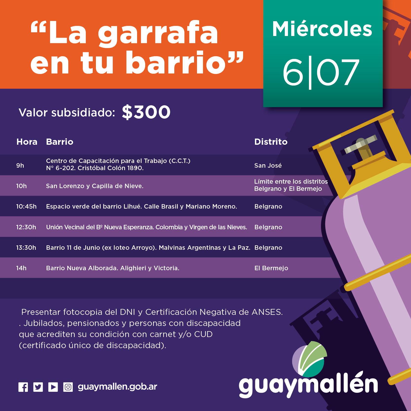 La Municipalidad de Guaymallén informa que la provisión de gas envasado con subsidio municipal se ha visto restringida por disposiciones de la Secretaría de Energía de la Nación, al fijar cupos de recarga inferiores a la demanda de los sectores más vulnerables. Por este motivo, los vecinos podrán adquirir por familia solo una garrafa subsidiada de 10 kg. a $300, en lugar de dos como se venía realizando.