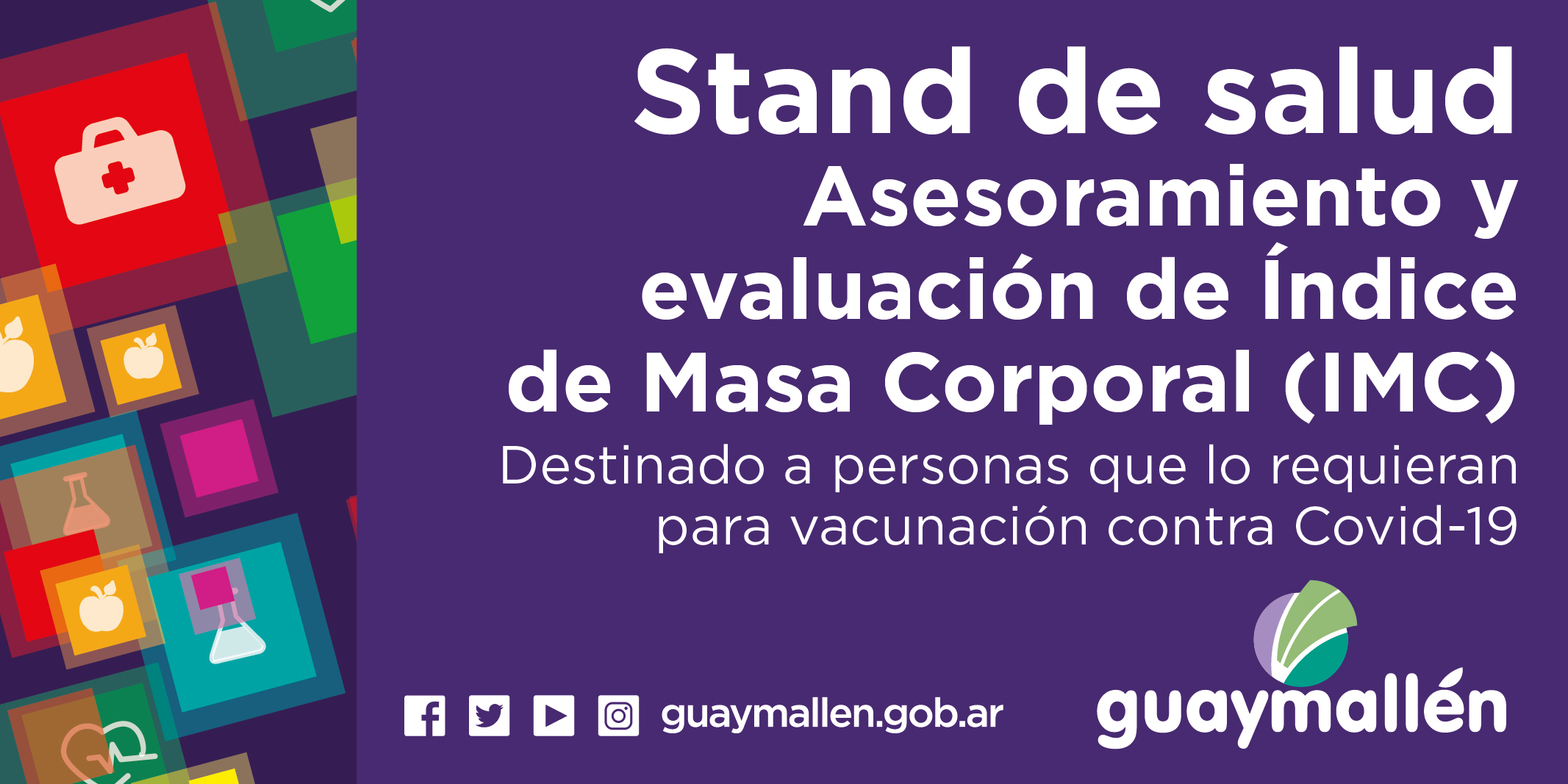 Durante la próxima semana, la comuna continuará realizando evaluaciones de Índice de Masa Corporal (IMC) en distintos lugares del departamento. El servicio gratuito está destinado a todas aquellas personas que necesiten certificar este valor para acceder a la vacunación contra el Covid-19. Además, se les realiza toma de tensión arterial y glucemia para la evaluación y pesquisa de riesgos de enfermedades crónicas. También pueden acercarse con estudios médicos complementarios y antecedentes de salud.
