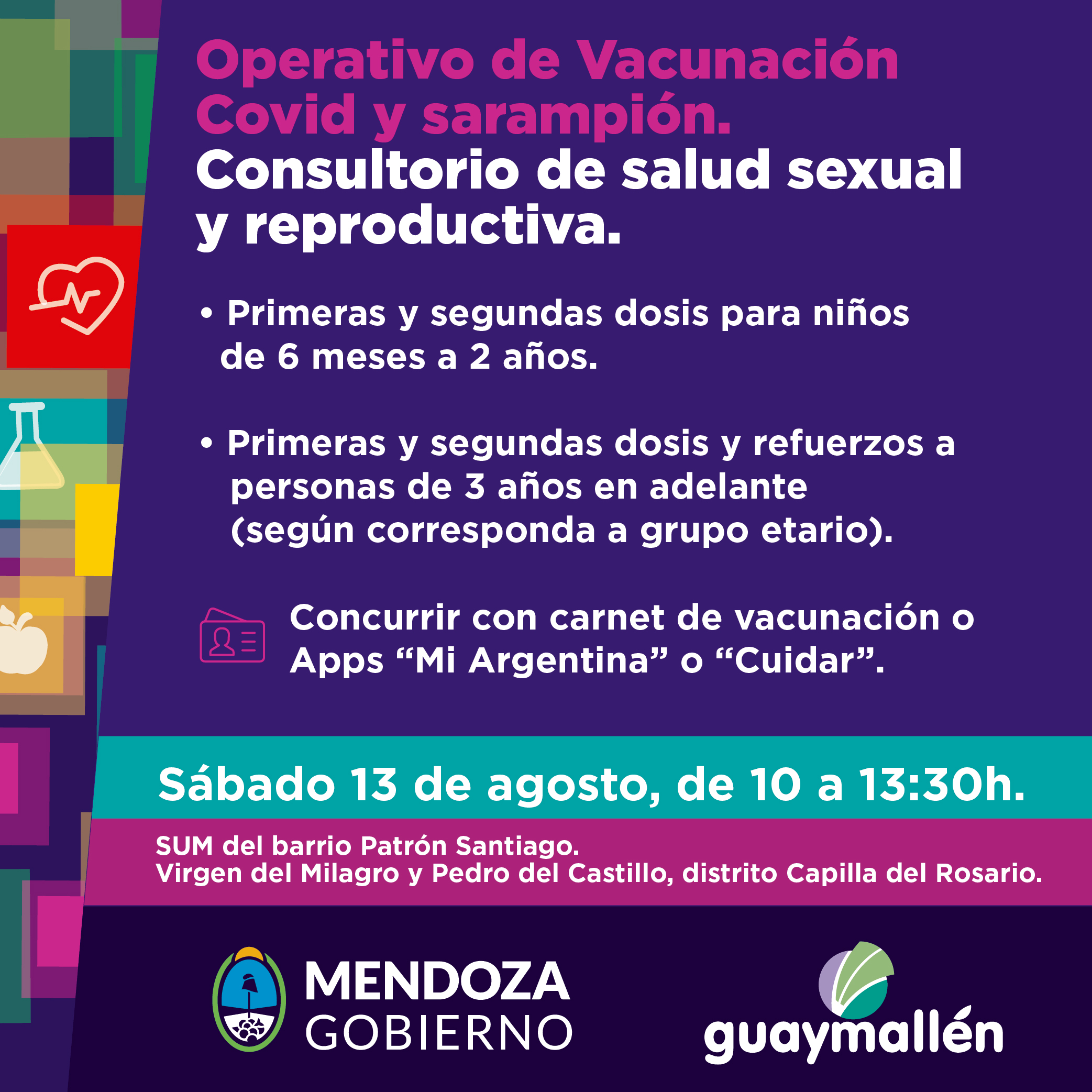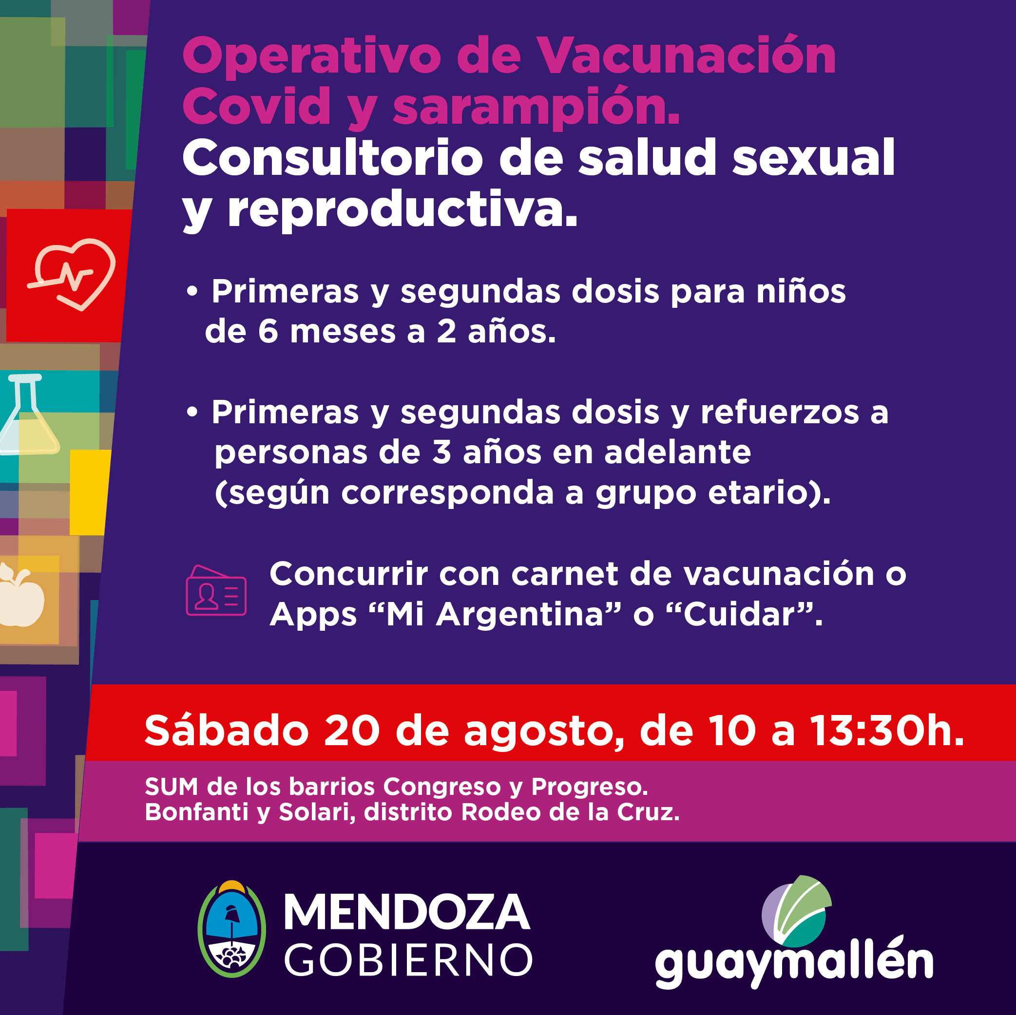 Durante el mes de agosto, el dispositivo de vacunación municipal realizará dichos operativos en El Sauce, Capilla del Rosario y Rodeo de la Cruz. En esas locaciones, los vecinos podrán vacunarse contra el sarampión o iniciar o completar el esquema contra el coronavirus. Los interesados deberán presentar DNI y carnet de vacunación, ya sea en formato papel o a través de las aplicaciones “Mi Argentina» y/o “Cuidar”.