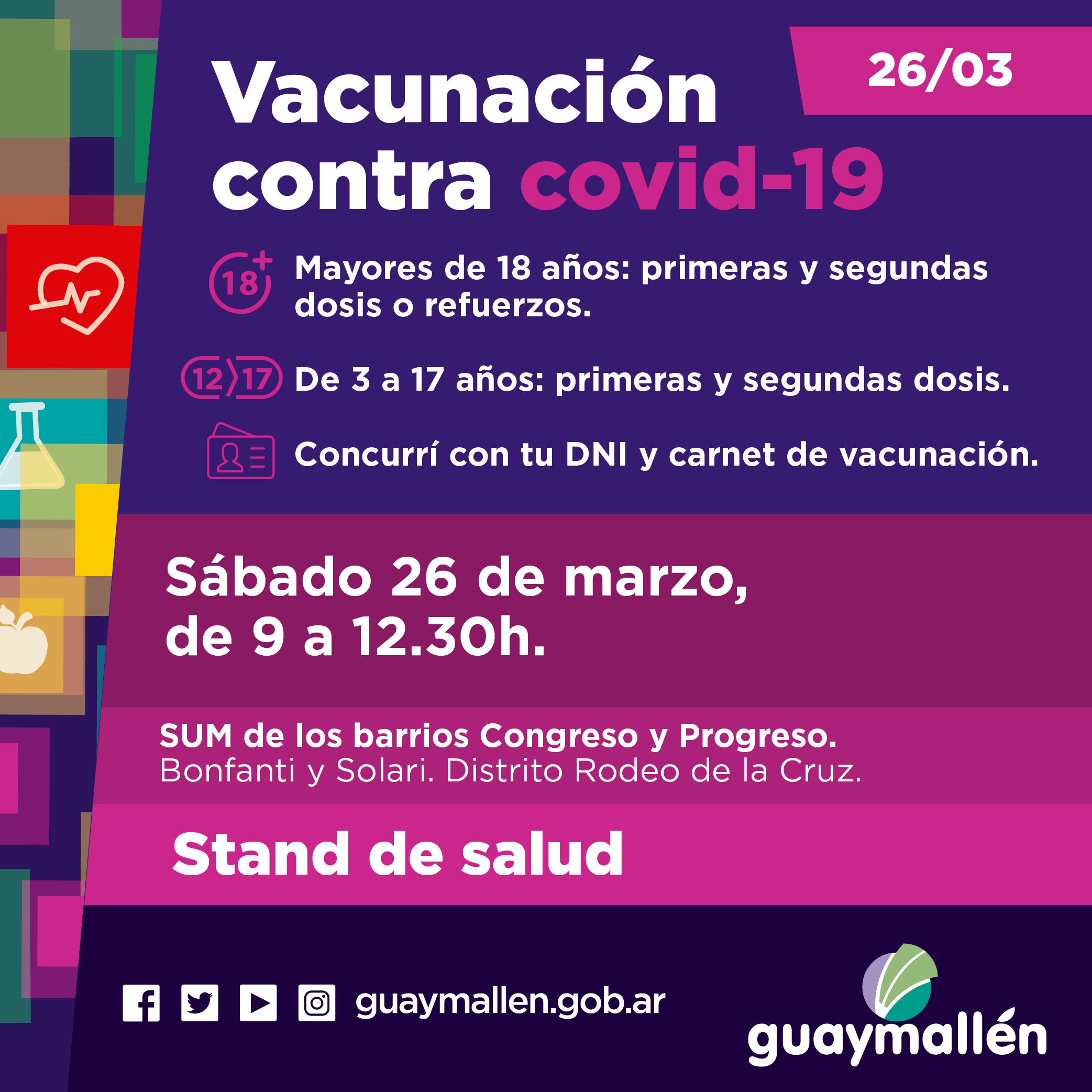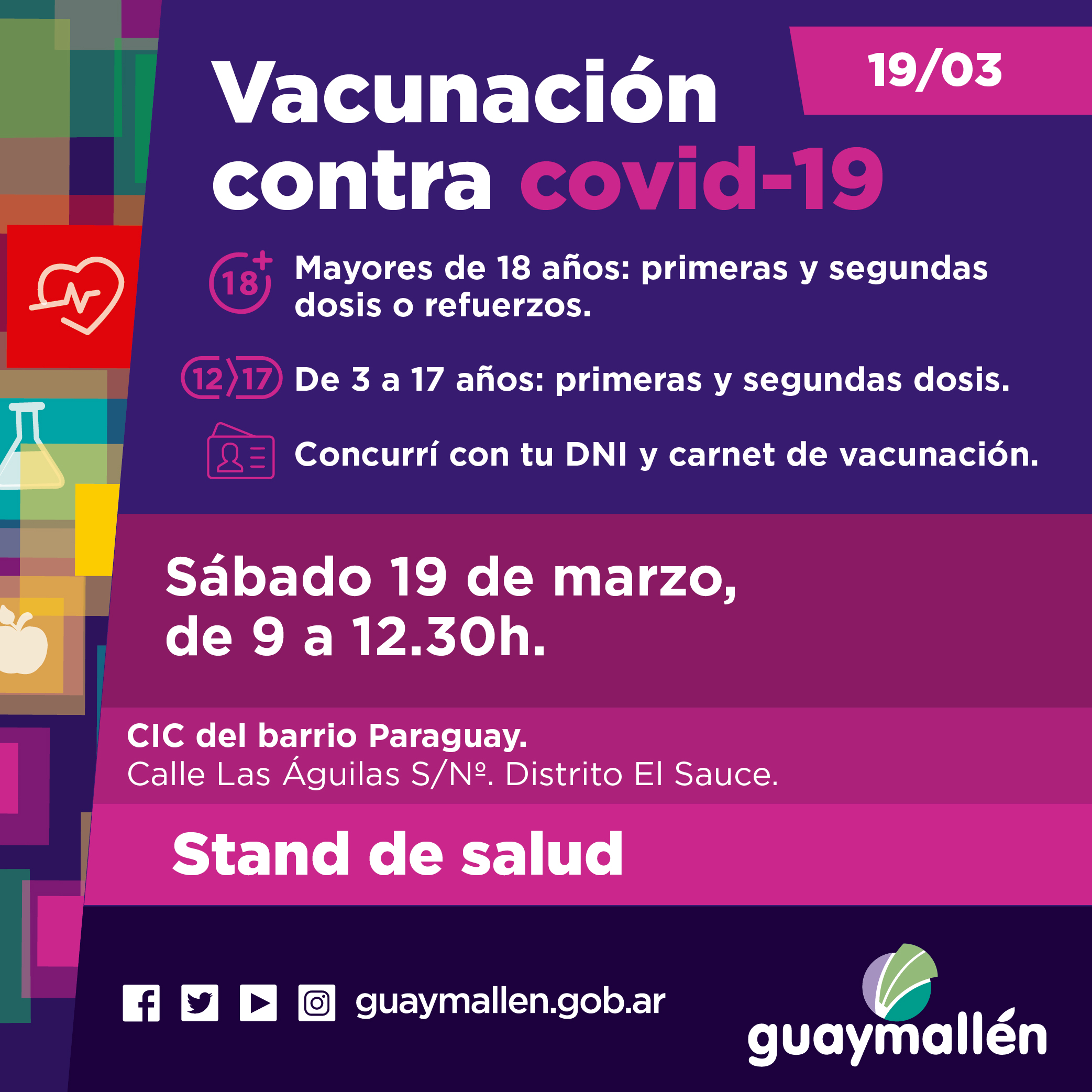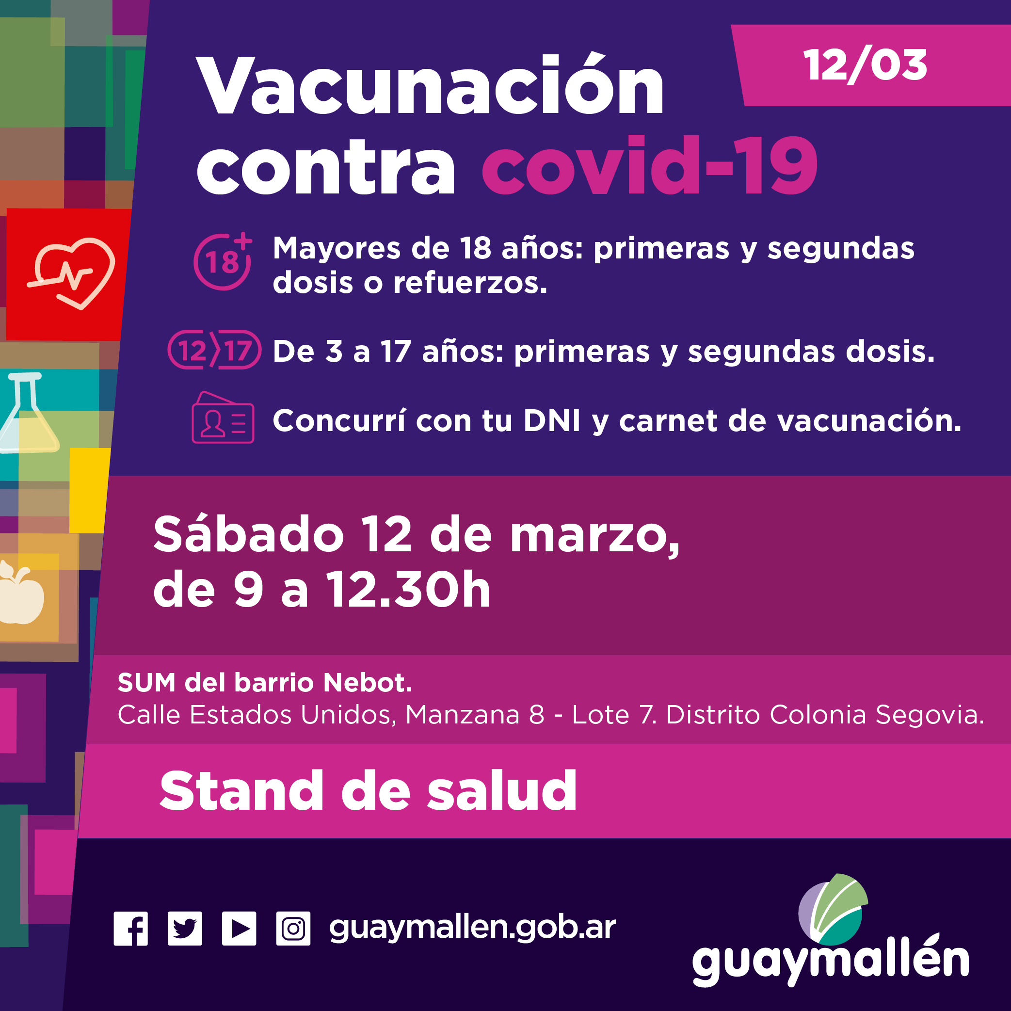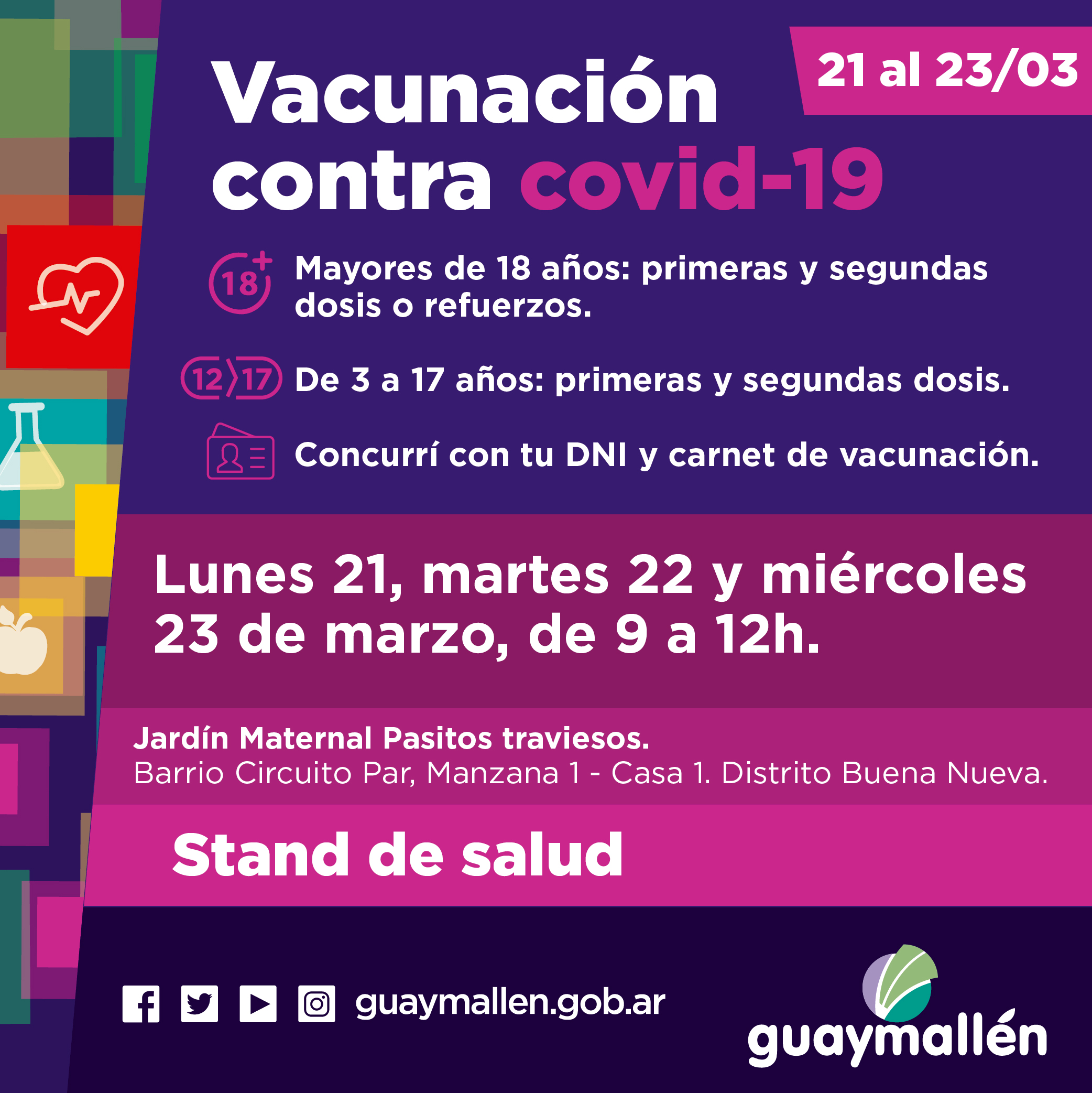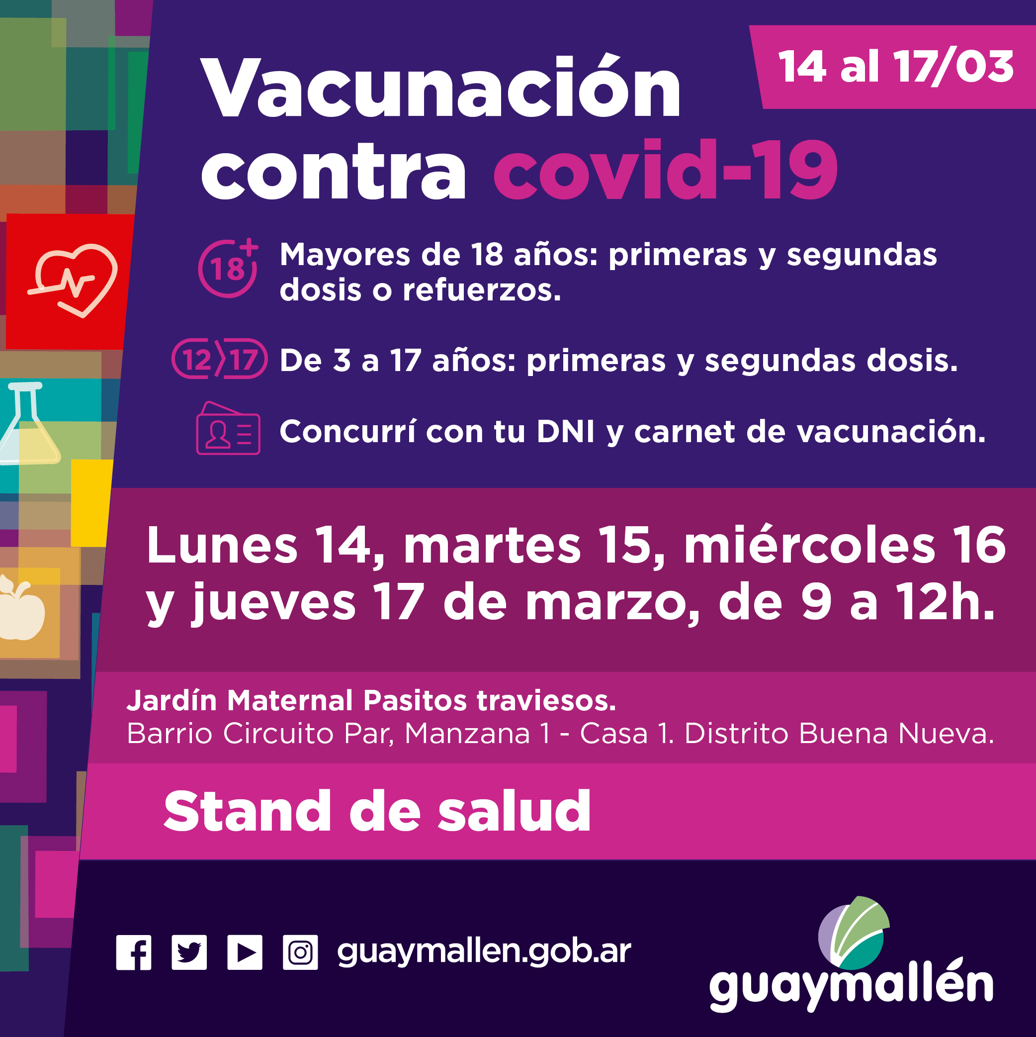 A partir de mañana, martes 8 de marzo, el dispositivo municipal realizará operativos territoriales para que los vecinos puedan iniciar o completar el esquema de vacunación Covid. Los interesados deberán presentar carnet de vacunación o Apps “Mi Argentina y/o “Cuidar” y DNI.