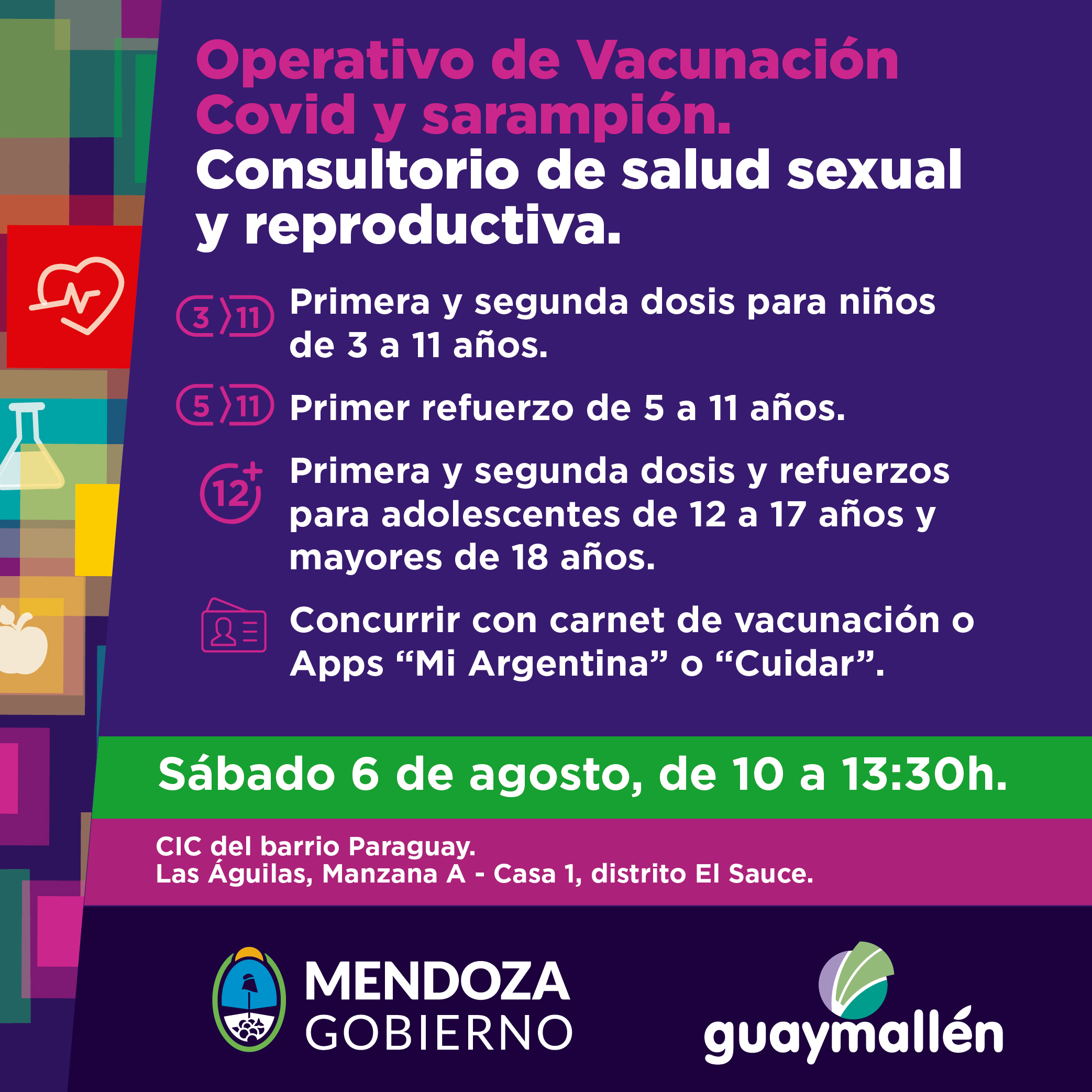 *Sábado 6 de agosto, de 10 a 13:30h: CIC del barrio Paraguay (Las Águilas, Manzana A – Casa 1, distrito El Sauce)