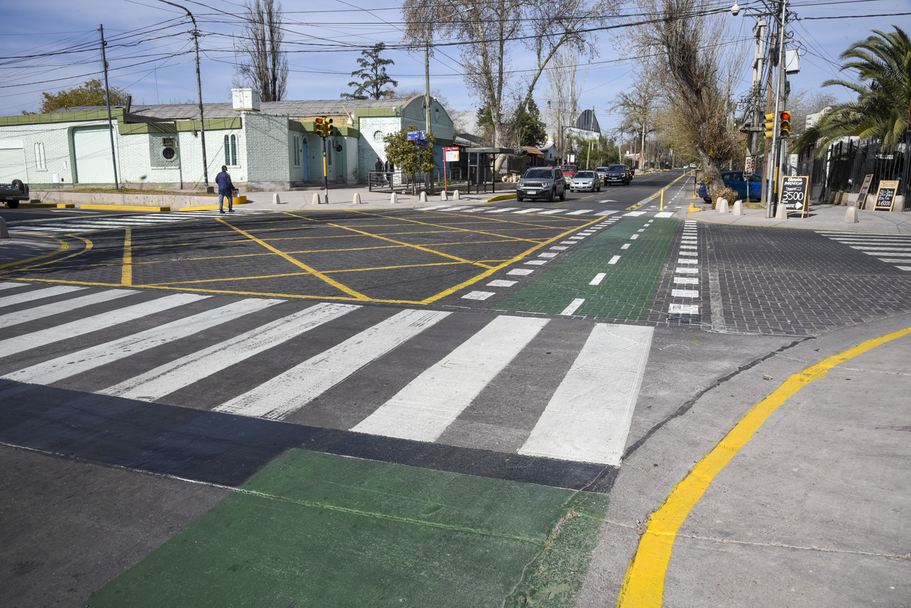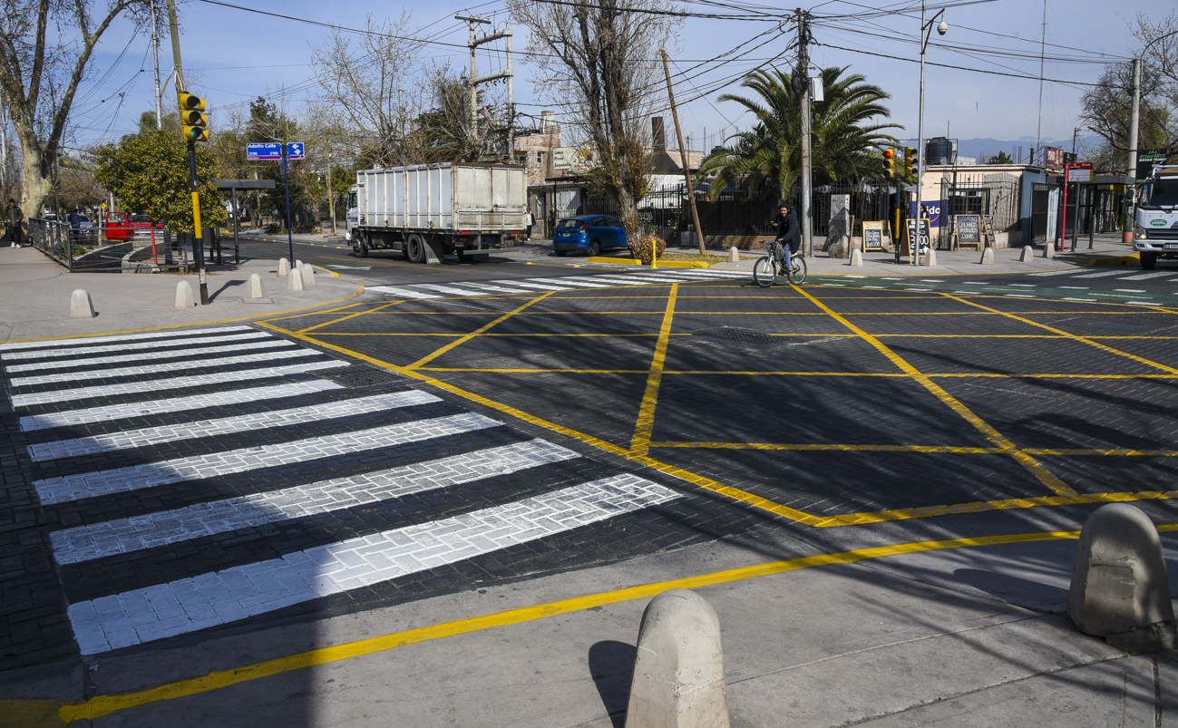 La Municipalidad de Guaymallén, a través de su Dirección de Demarcación  Vial, concluyó con los trabajos de señalización en la esquina de Estrada y Adolfo Calle, en el límite de los distritos Las Cañas y Villa Nueva.