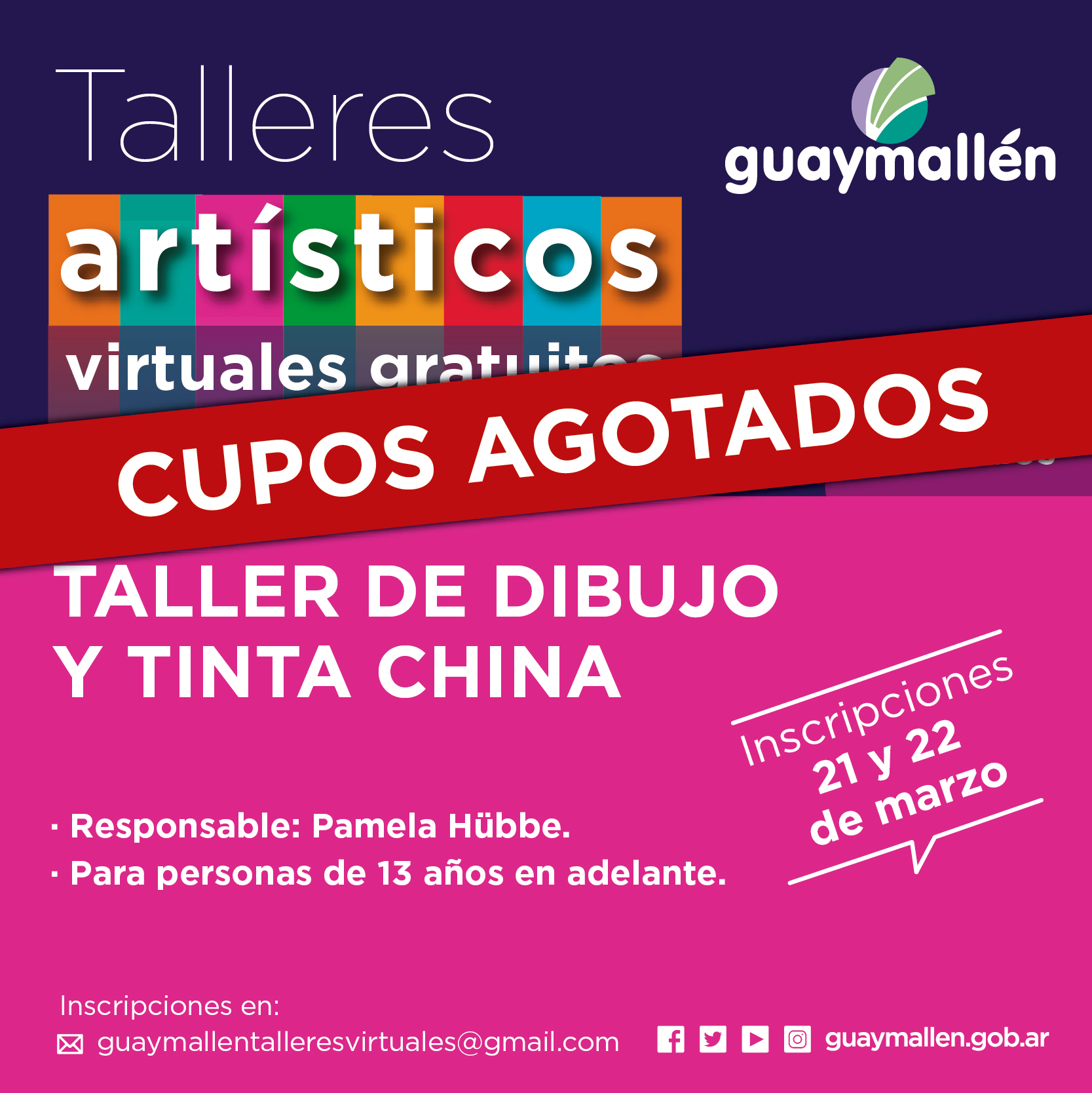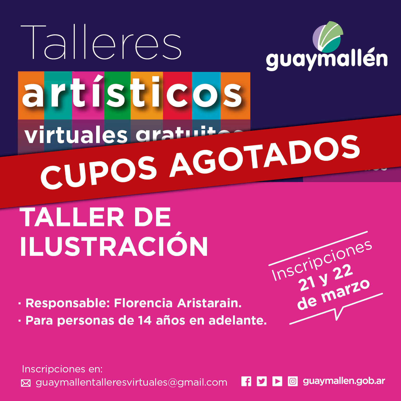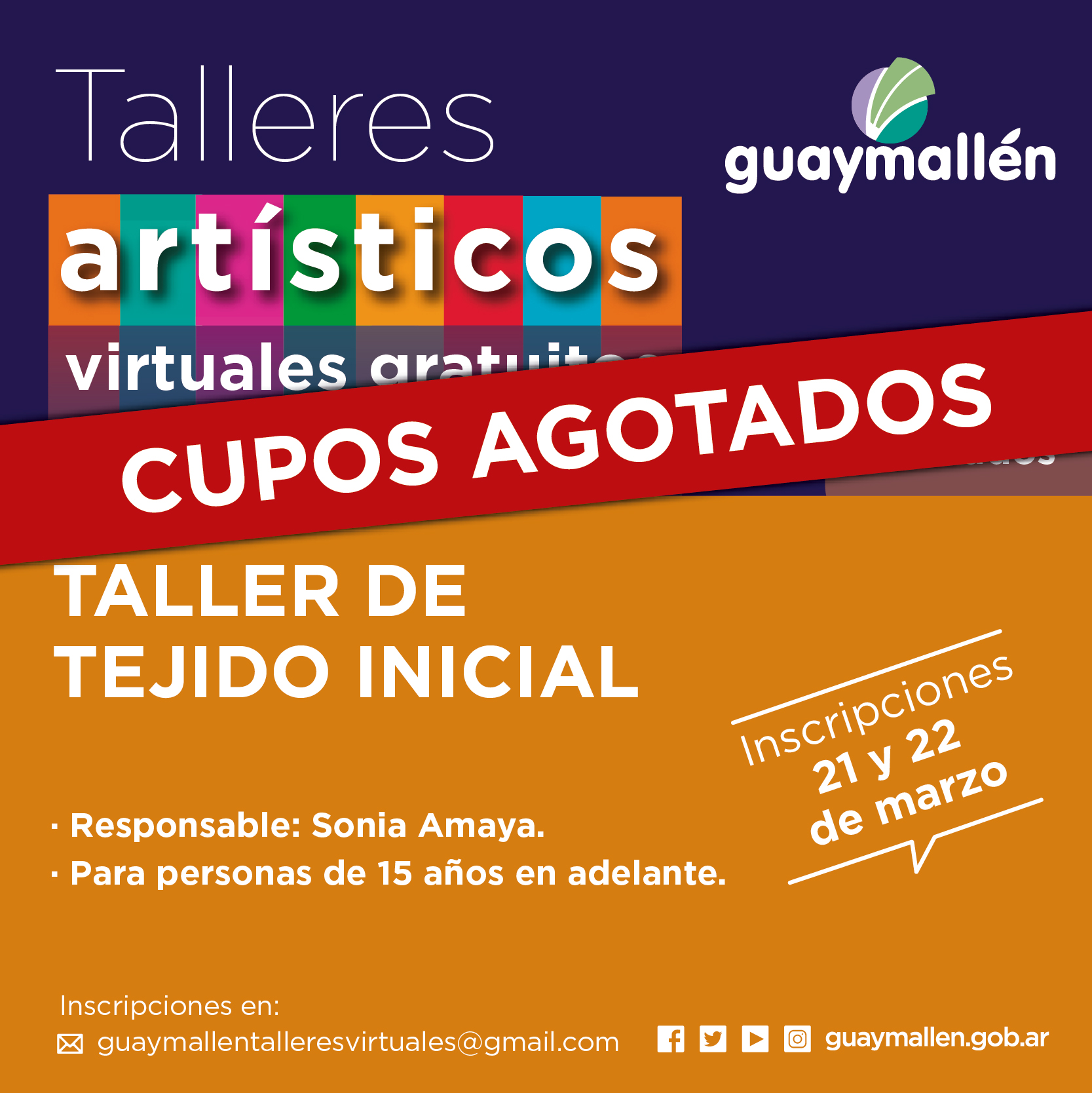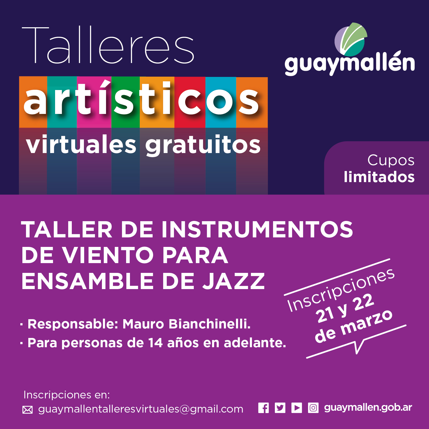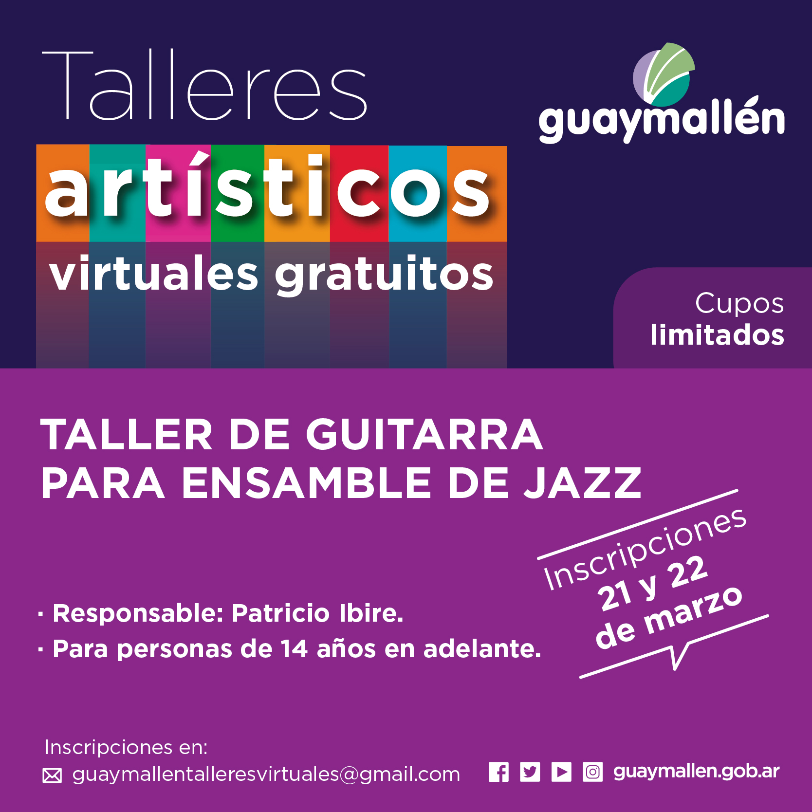 Los interesados podrán inscribirse los días 21 y 22 de marzo, a través del correo: guaymallentalleresvirtuales@gmail.com