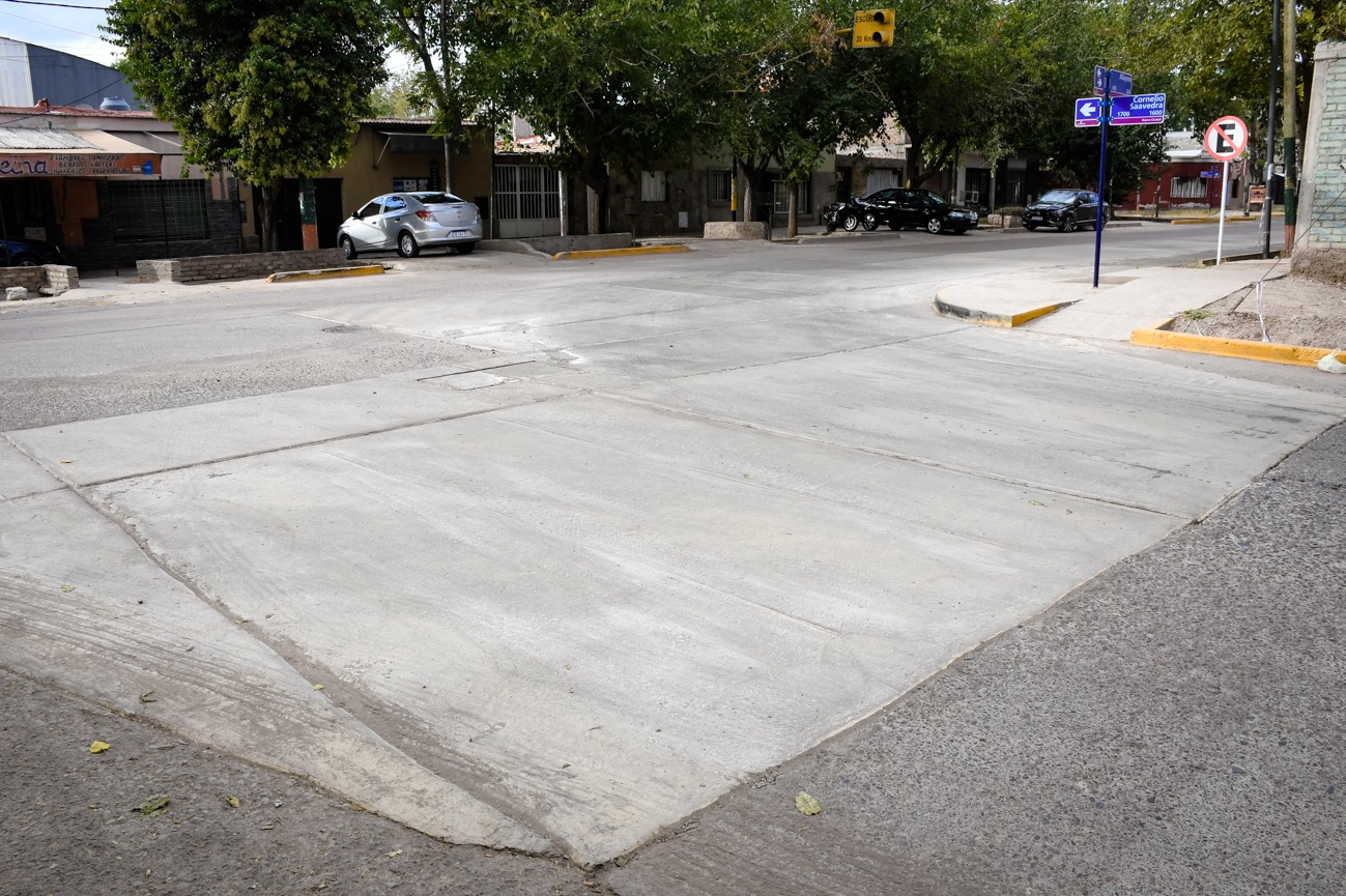La Municipalidad de Guaymallén concluyó con el recambio de losas de hormigón en la intersección de calles Saavedra y Allayme. La obra se tornó primordial para la comuna debido al marcado deterioro del sector, producto del tránsito permanente de camiones y líneas de colectivos. Debido a esto fue necesario también efectuar distintas reparaciones y conexiones domiciliarias de agua y cloacas.