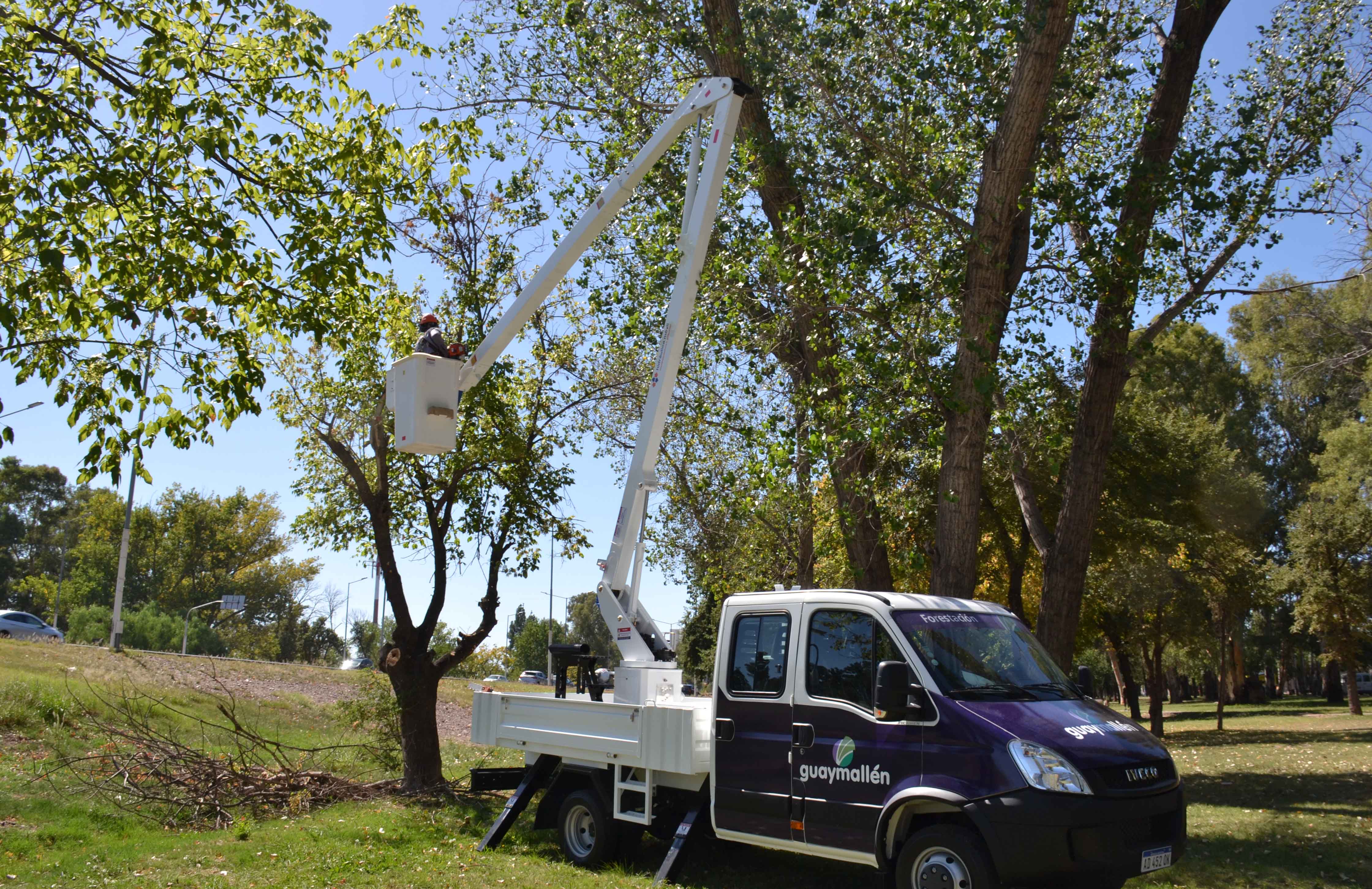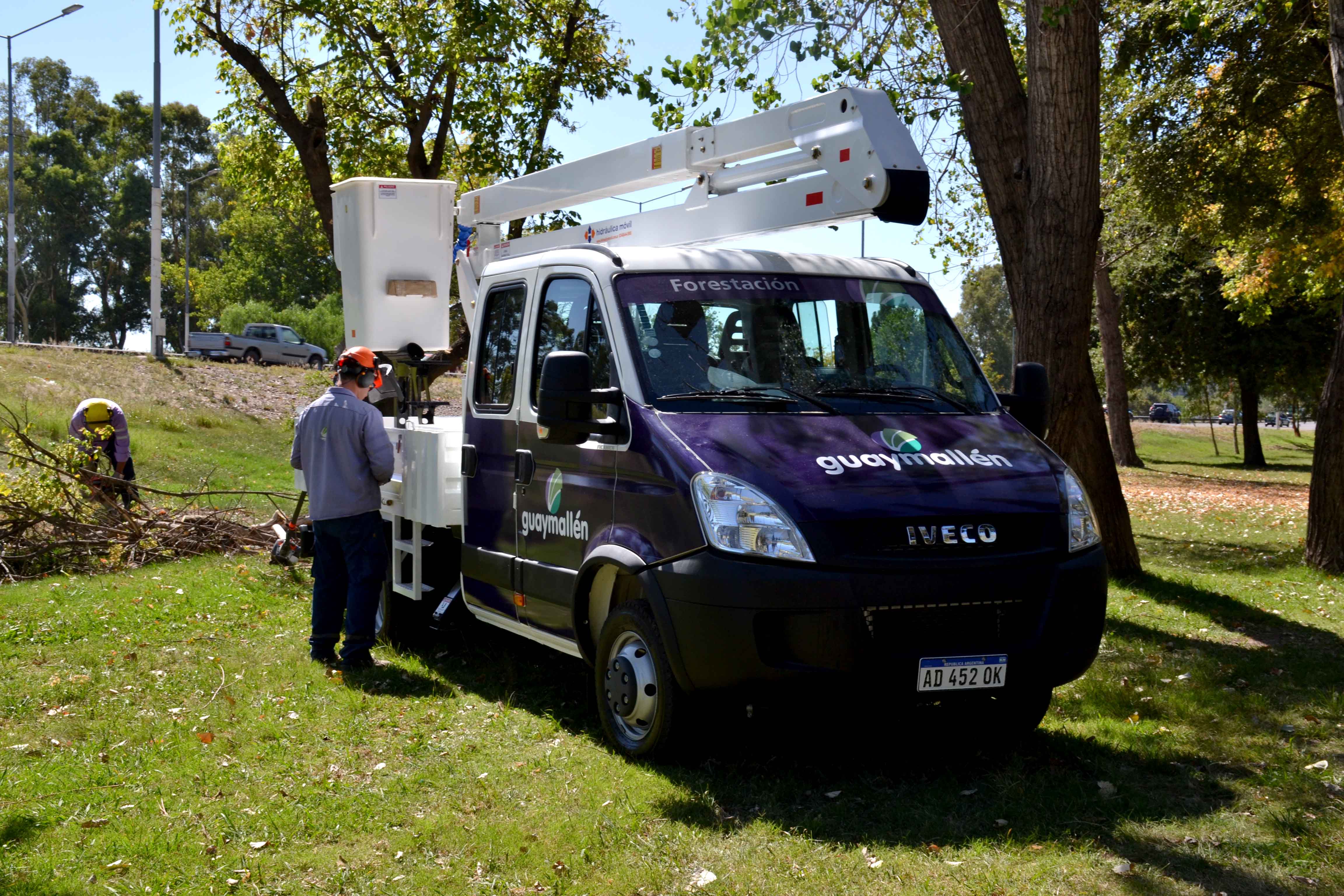 Es este caso se trata de un camión mediano doble cabina, con un hidroelevador de 13 metros de altura, que se utiliza en la erradicación de forestales, poda y desrame, tanto de los espacios verdes, como árboles que por inclemencias climáticas u otros factores de riesgo deben ser arrancados y retirados.