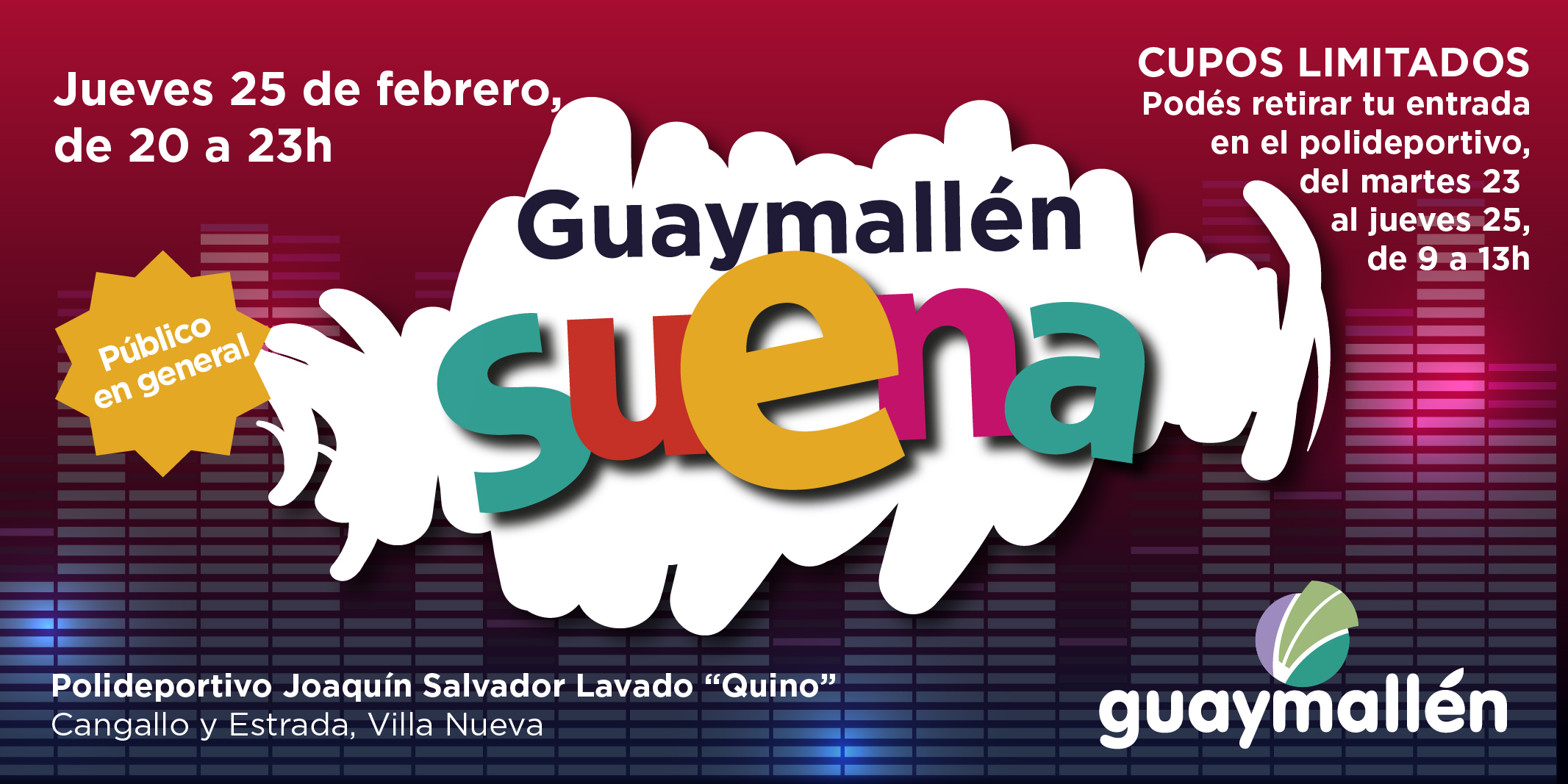 Guaymallén Suena se lanzó en el año 2018, pensado como un programa que ayude a los artistas que recién empiezan en la música a incorporar nuevos conocimientos para desempeñarse mejor en escena, profesionalizar y jerarquizar el grupo. Esto implica cursos de diseño gráfico, de programación musical, manejo de tandas y de espacios publicitarios. Una vez que se completa esa instancia de formación, se les brinda la posibilidad de participar en un show en vivo. Los recitales se graban para generar contenido de la banda y difundirlo a través de distintas plataformas virtuales. Este acompañamiento es enriquecedor desde varios puntos de vista teniendo en cuenta que, generalmente, una agrupación emergente debe transitar su camino de manera individual.