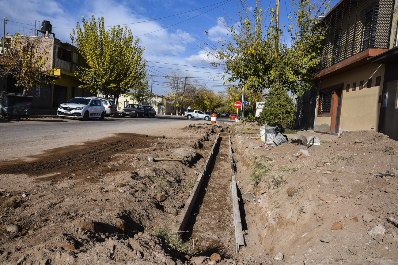 El municipio encara una obra hídrica necesaria en el costado oeste de calle Félix Suárez, en los metros comprendidos desde Godoy Cruz hasta Belgrano. Este tramo está ubicado en el sector norte de Villa Nueva, en el límite con el distrito Belgrano.