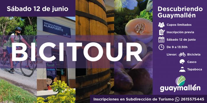 Con el fin de promover una actividad saludable y -a la vez- brindar la oportunidad de conocer la historia, cultura e instituciones de referencia del departamento, el municipio ha organizado un nuevo “Bicitour, descubriendo Guaymallén”.