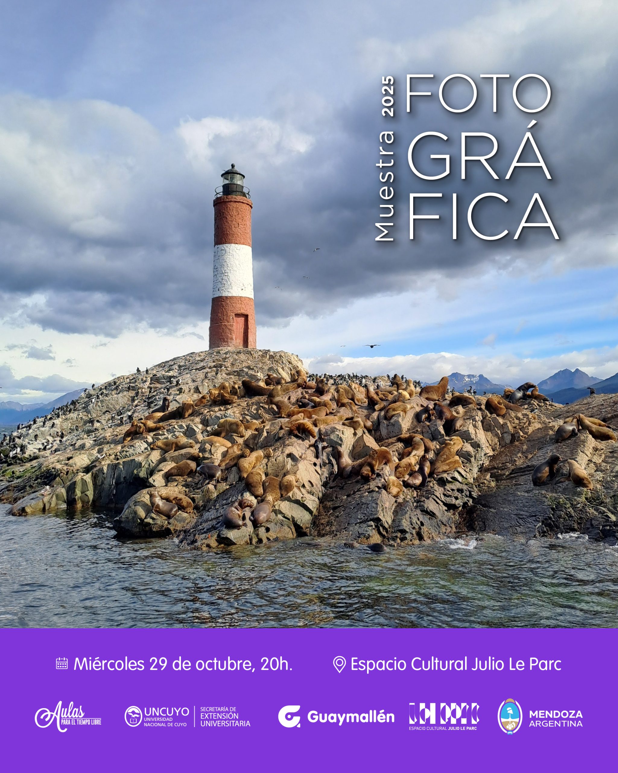 La Municipalidad de Guaymallén invita a participar de la inauguración de la muestra 2025 del Taller de Fotografía de Aulas para el Tiempo Libre, espacio dependiente de la Secretaría de Extensión y Vinculación de la UNCuyo. Será el miércoles 29 de octubre, a las 20h, en el Espacio Cultural Julio Le Parc, con entrada gratuita.