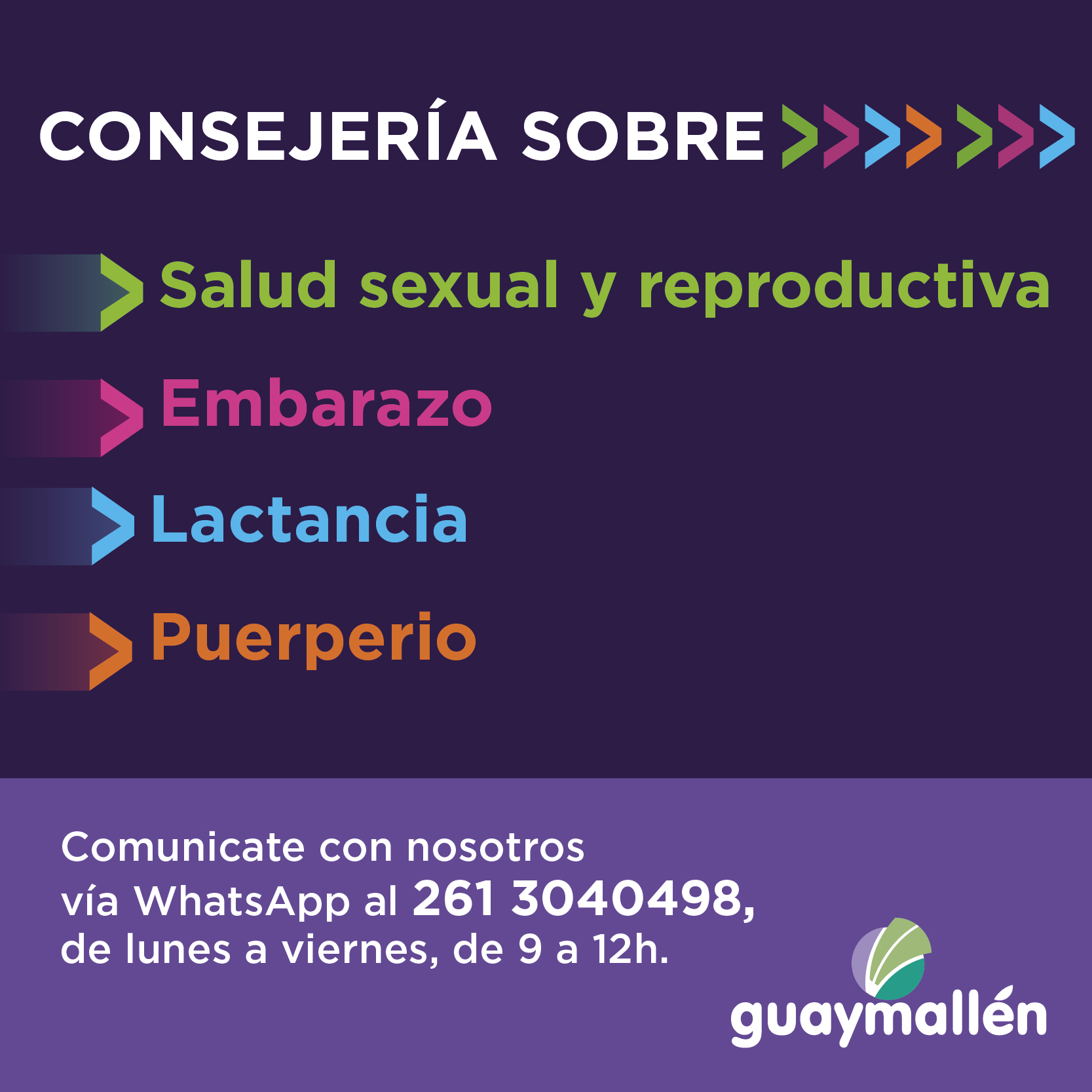 En el contexto de la Semana Mundial de la Lactancia Materna, la Municipalidad de Guaymallén recuerda a la comunidad que sigue vigente el espacio de asesoramiento para resolver inquietudes vinculadas a salud sexual y reproductiva. Esta propuesta incluye acompañamiento para vivenciar una experiencia positiva durante el periodo de embarazo, lactancia y puerperio.