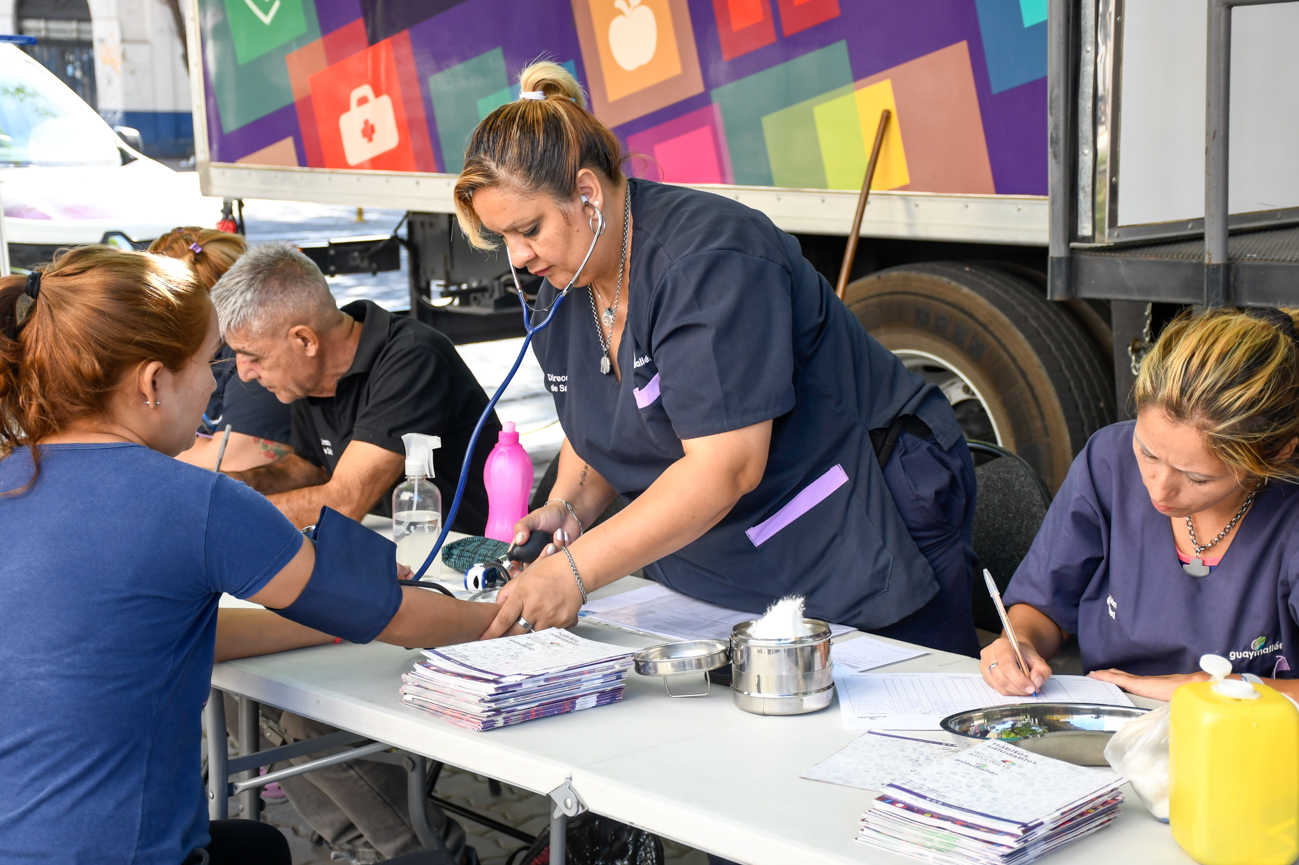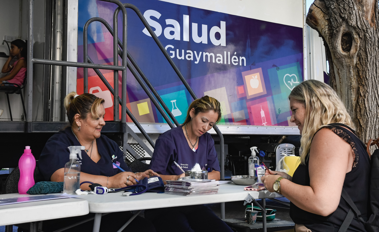 Profesionales de la Dirección de Salud realizan testeos de tensión arterial, glucemia, oximetría, índice de masa corporal y consejería de hábitos saludables.